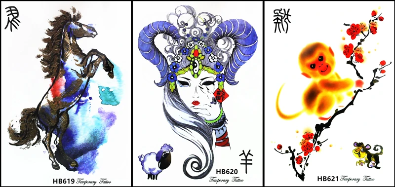 Nu-TATY Dragon китайский новый год 12 животных Зодиака временное боди-арт,