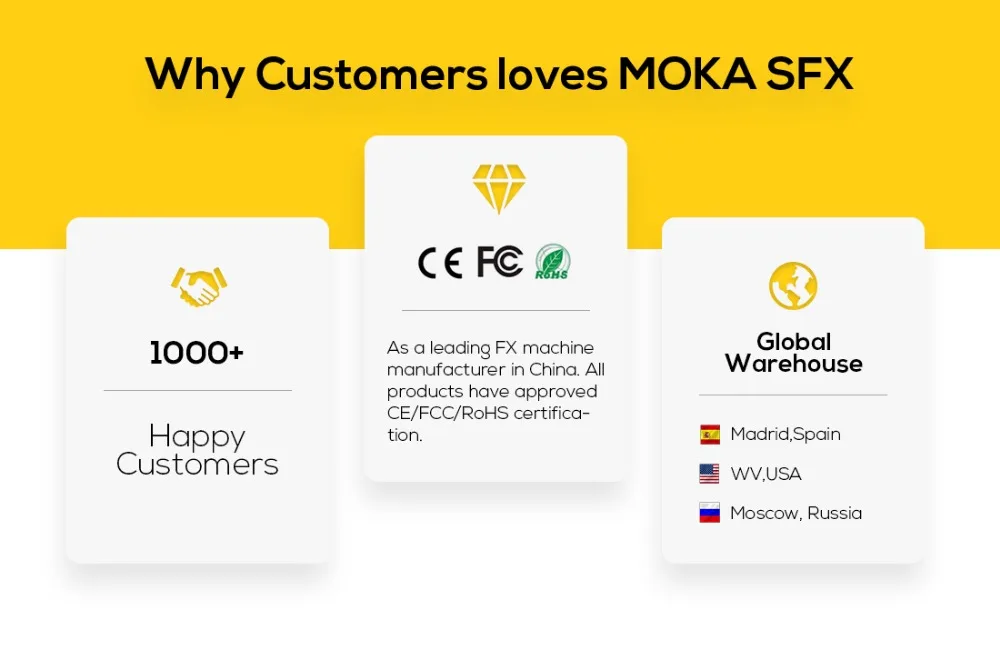 MOKA SFX пламя проекторОбновлено до высоковольтного зажигания, скорость зажигания до 98%, Повысить эффективность работы, а также избежать ошибок в работе, вызванных ошибками проектора пламени, что делает ваш проектор пламени более стабильным в работе/