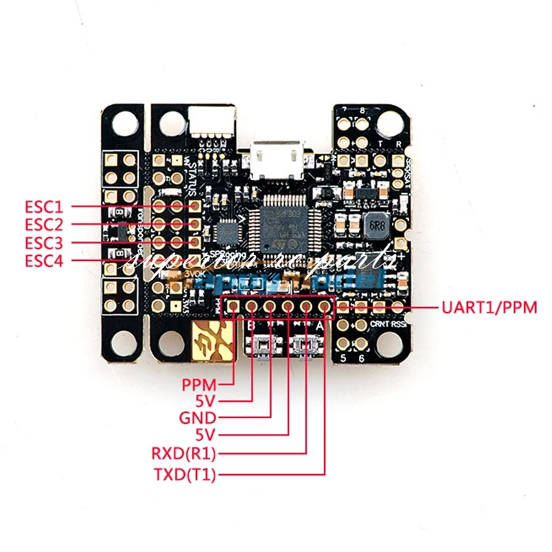 Мини-дизайн SP Racing F3: Инновационный-Новый, умный и практичный дизайн. Гибкие углы снимаются для микрорамок, кнопок и транспондера можно отсоединять и перемещать. Прочные соединители для всех основных разъемов ввода/вывода для аварийной установки. Штабелируемое крепление к PDB или OSD. Компактный центр PCB измеряет 36x24 мм, основная площадь 36x36 мм, Секция транспондера 36x6 мм, вся плата всего 36x43 мм. Профессиональный-симметричный, аккуратный и аккуратный. Оборудование было разработано ведущим разработчиком Cleanflight, чтобы быть более способным, чем STM32F1-based доски предыдущего поколения, и установить эталон для полнофункциональной мини-доски STM32F3-based. Спецификация: 36x36 мм доска с 30,5 мм монтажными отверстиями Вес: 7 грамм STM32F303 CPU, 72 МГц inc FPU Слот для карты MicroSD (SD/SDHC, до 32 ГБ) MPU9250 акселерометр/гироскоп/компас Барометр BMP280 5 в регулятор для питания приемника и небольших сервоприводов 2 кнопки 2 ИК-светодиодов и уникальный код для гоночного транспондера Разъем MicroUSB 1x 2pin хотя-отверстия для штыревых заголовков для прямого подключения аккумулятора 2-5S (макс. 25V) 8x 3pin хотя-отверстия для штыревых заголовков для ESC/сервопривода соединений 1x 2pin хотя-отверстия для штыревых заголовков для UART3 1x 6 штифтов для штыревых заголовков для UART1 и PPM (для стандартного последовательного RX/SBus/PPM свинца) 1x 3-контактный отверстия для штыревых головок для телеметрии/светодиодной ленты 1x 3-контактный отверстия для штыревых разъемов для зуммера 1x 2pin хотя-отверстия для штыревых заголовков для RSSI и мониторинга тока батареи 1x 3-контактный разъем для JST-ZH для спутниковых приемников speedtrum. 1х 4pin нижний установленный, утопленный JST-SH разъем для I2C 1х 4pin нижний установленный, утопленный JST-SH разъем для UART2 1х 4pin Верхнее Крепление JST-SH гнездо для SWD отладки 2x нижние припоя колодки для гидролокатора