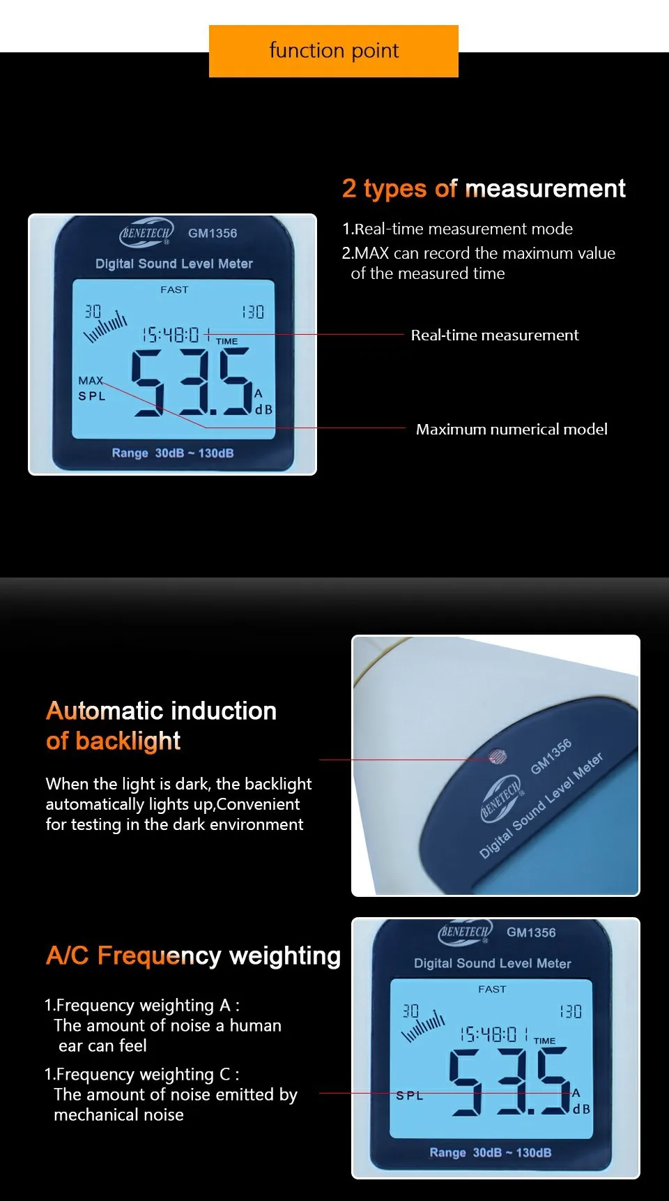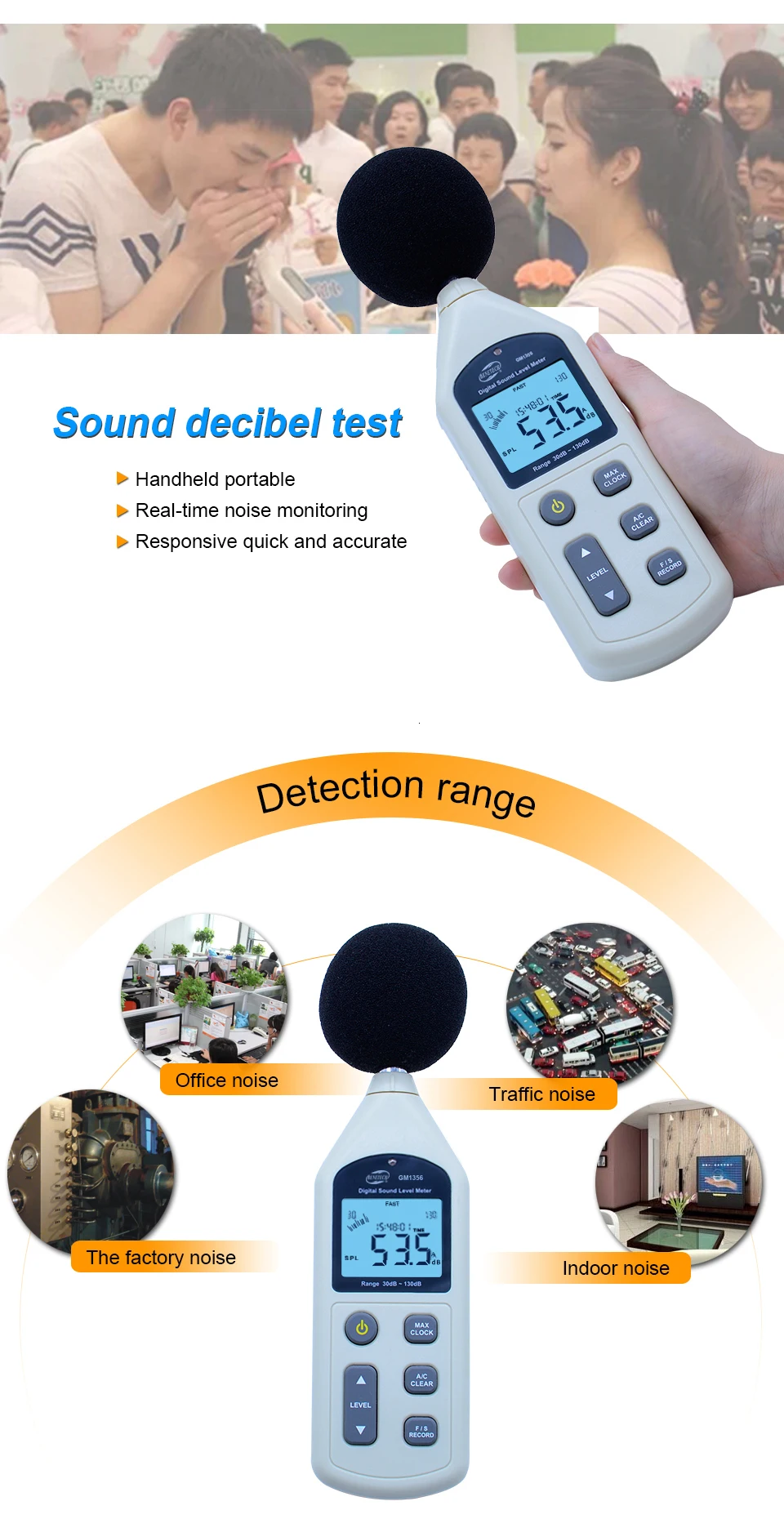 | Измерительный инструмент Диапазон | 30dBA ~ 130dBA, женская обувь, Размеры 35-130dBC |