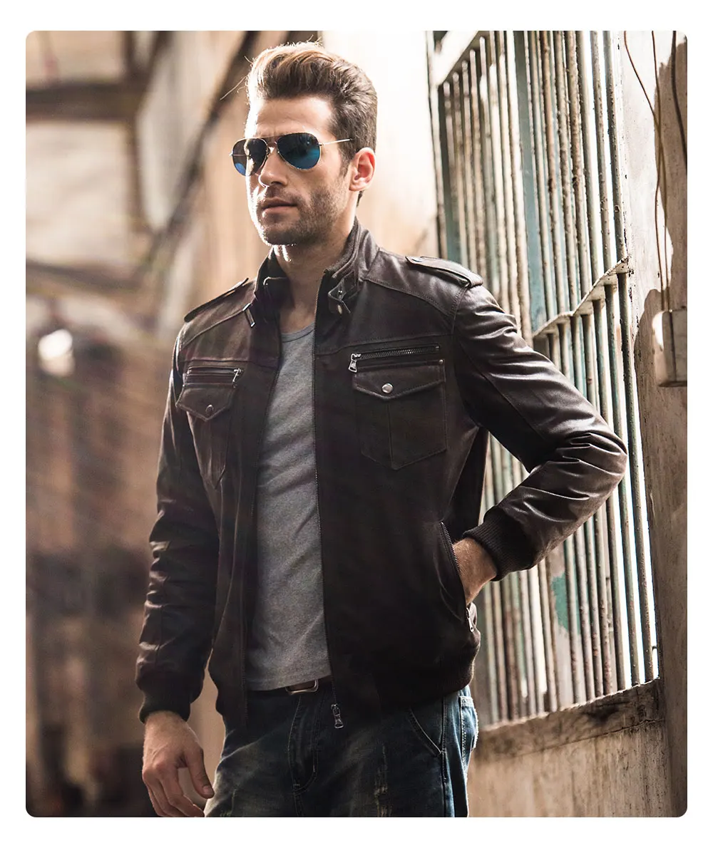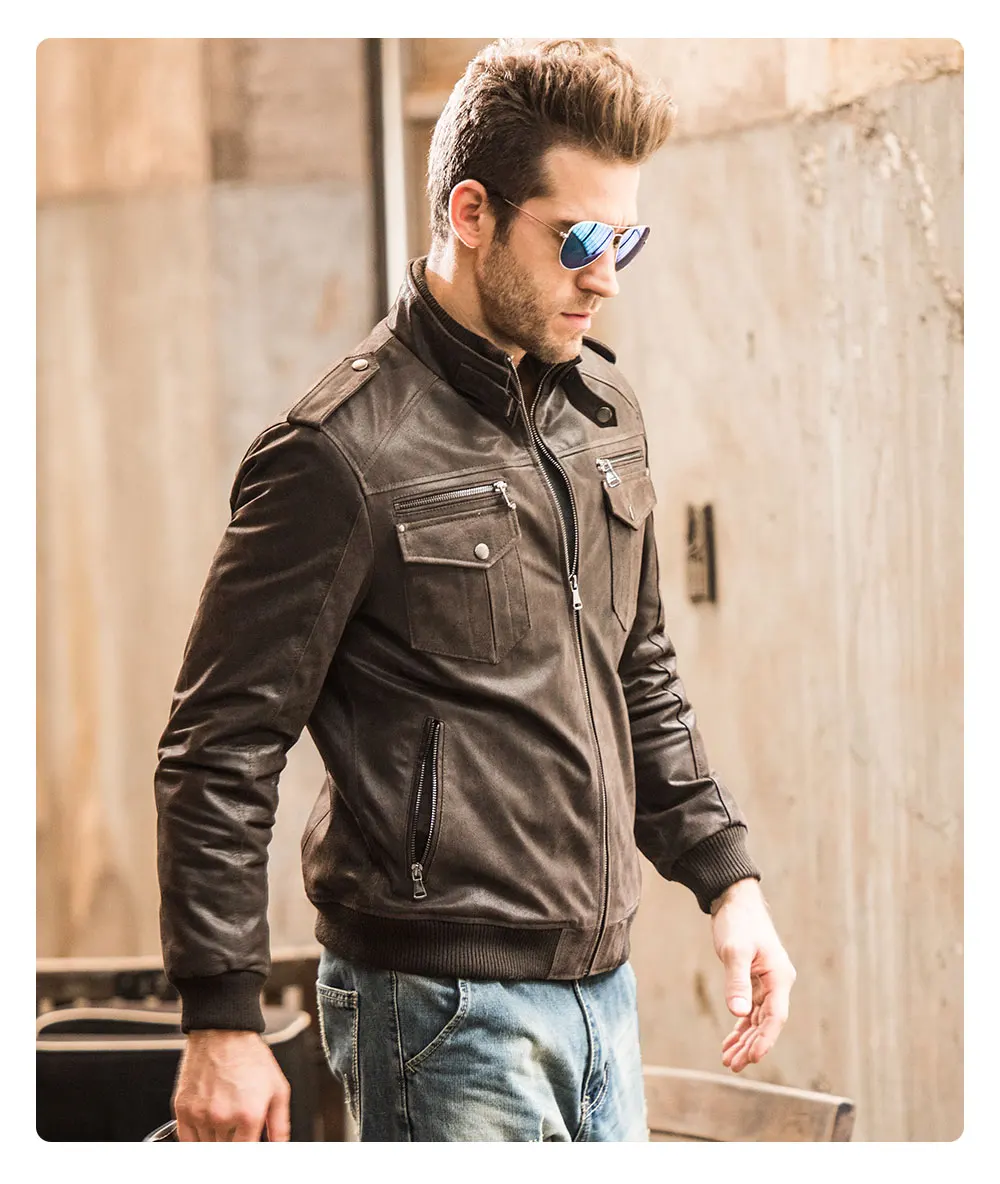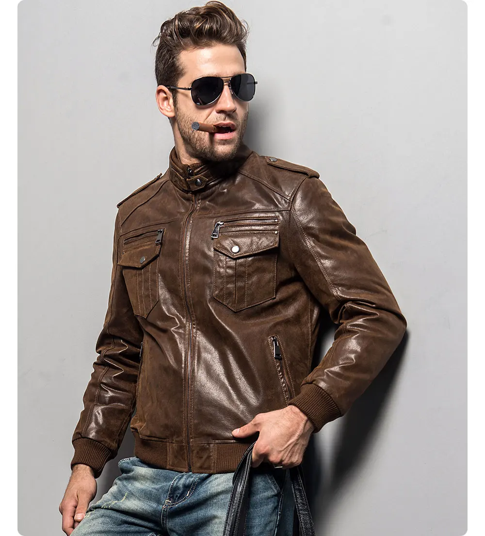 Новая стильная мужская овчина из натуральной кожи Классическая дизайнерская