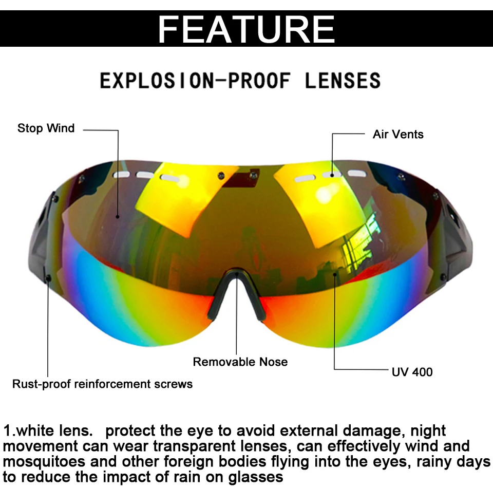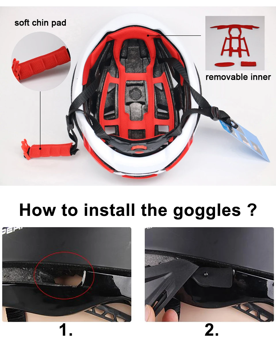 1. Спецификация: Пол: мужчин, женщин и подростков Размер: M/L (54-60 см) Объектив: Да Сетка от насекомых: Да 2. Материал: Снаружи: ПК, внутри: EPS, Пенополиуретан, Нейлоновый Регулируемый ремень Технология Unicase, более безопасная и идеальная 3. Рекомендации по хранению: Не хранить во влажной среде, рядом с источником тепла или непосредственно в светильник, шлем для сухой обработки, рекомендуется использовать парусиновую посылка для хранения. 4. Защита от ударов: Сверхлегкий, около 280 г Двухслойный дизайн, добавит 50% безопасности. Вентиляция, использование воздушного охлаждения делает воздух свободным Анатомический дизайн, двухсторонняя бархатная защитная накладка Простота в использовании, с волшебной пряжкой 5. Сертификация: CE ,EN1078, CPSC:16CFR1203, UKAS ISO9001 6. Есть 4 варианта. Шлем с 1 линзой, шлем с 2 линзами, шлем с 3 линзами, шлем с 4 линзами. Пожалуйста, обратите внимание на размещение вашего заказа.