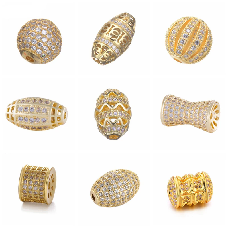 Бусины для украшения из бисера Juya, овальные медные бусины ручной работы с кубическим цирконием для изготовления ювелирных украшений из натуральных камней