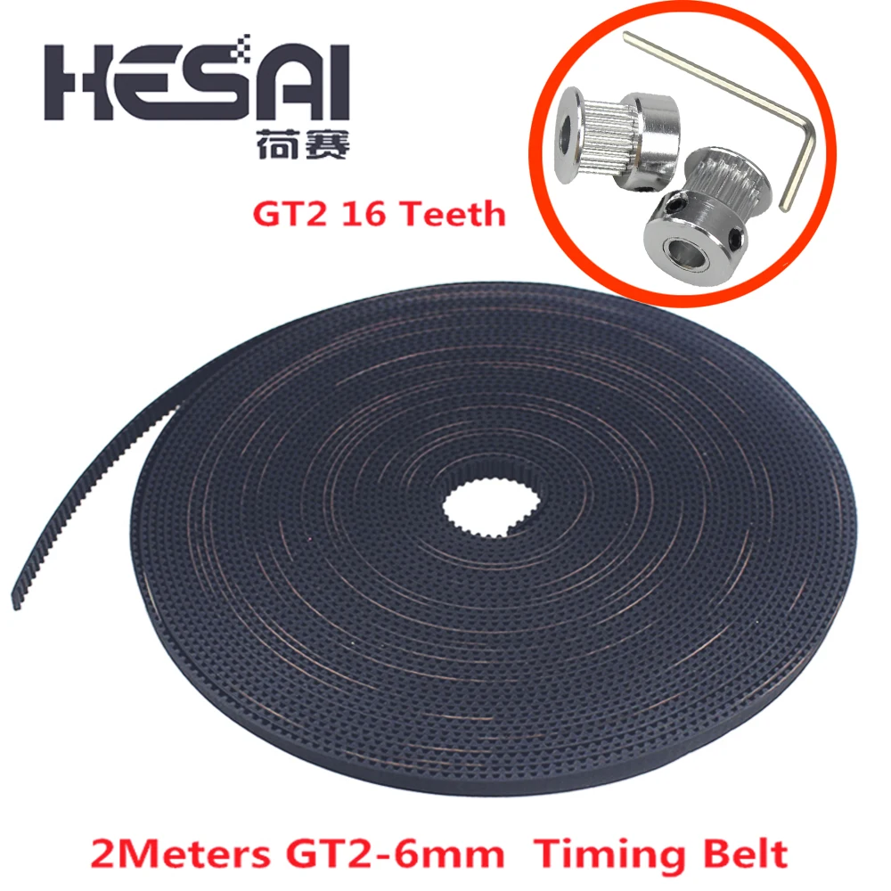 GT2 16 зубцов 16 зубцов 5 мм зубчатый Алюминиевый шкив + 2 метра резиновый GT2-6mm Ширина ремня ГРМ 6 мм для 3D принтера