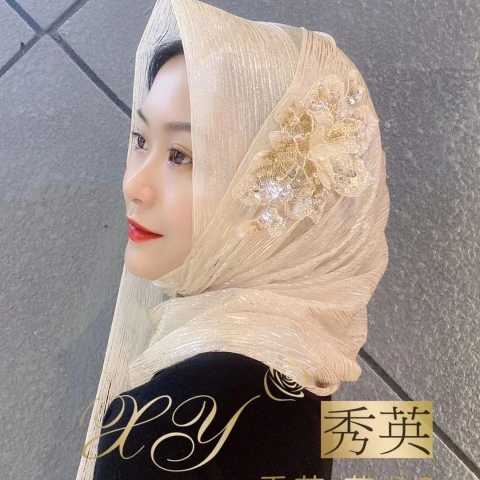 2020 Новый шифоновый мусульманский модный хиджаб с вышивкой женский большой шарф
