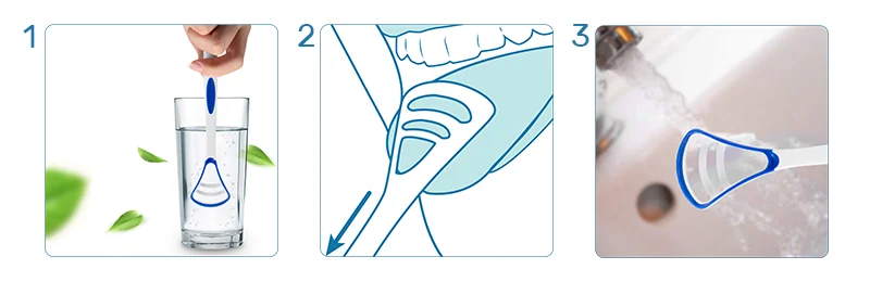 1-влажный очиститель языка с водой 2-щетка наизнанку 3-5 раз 3-Очистите свой очиститель и полость в краску