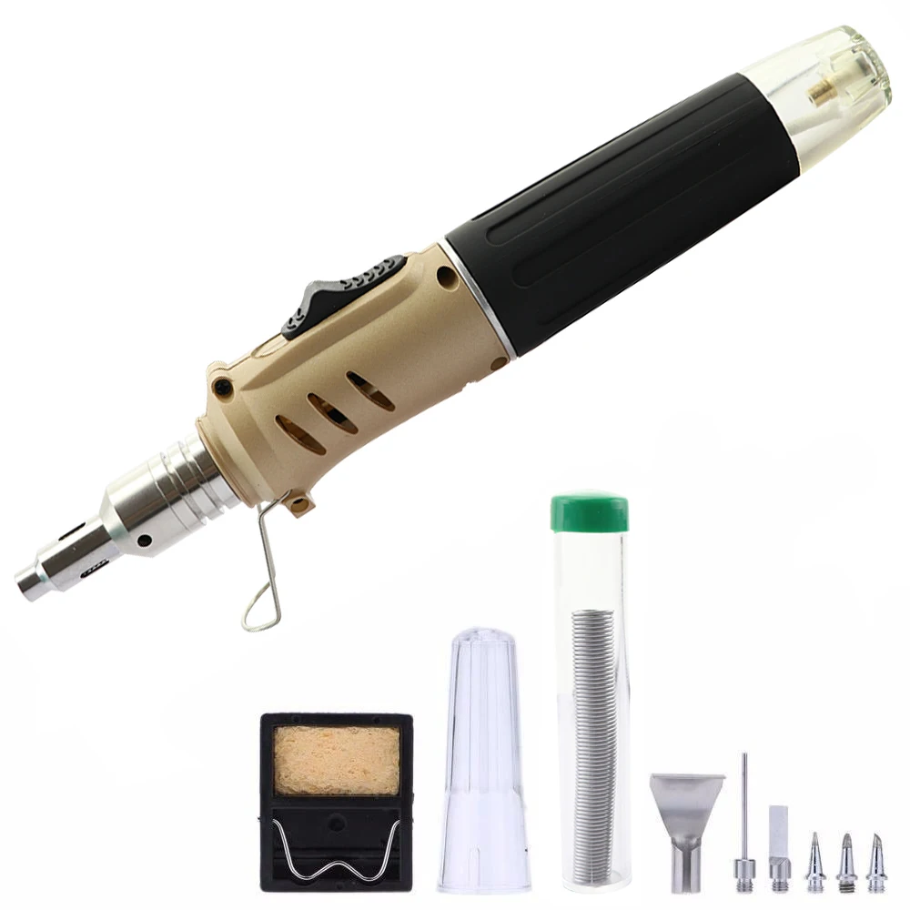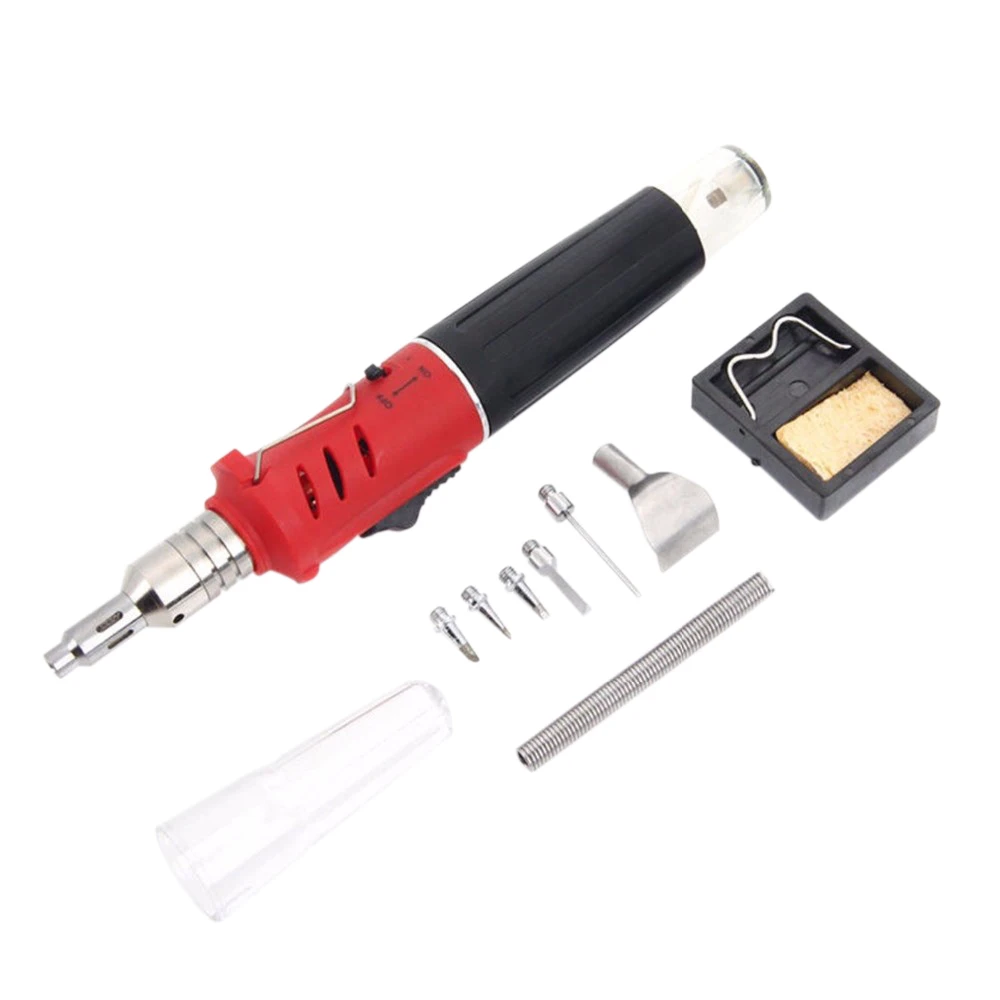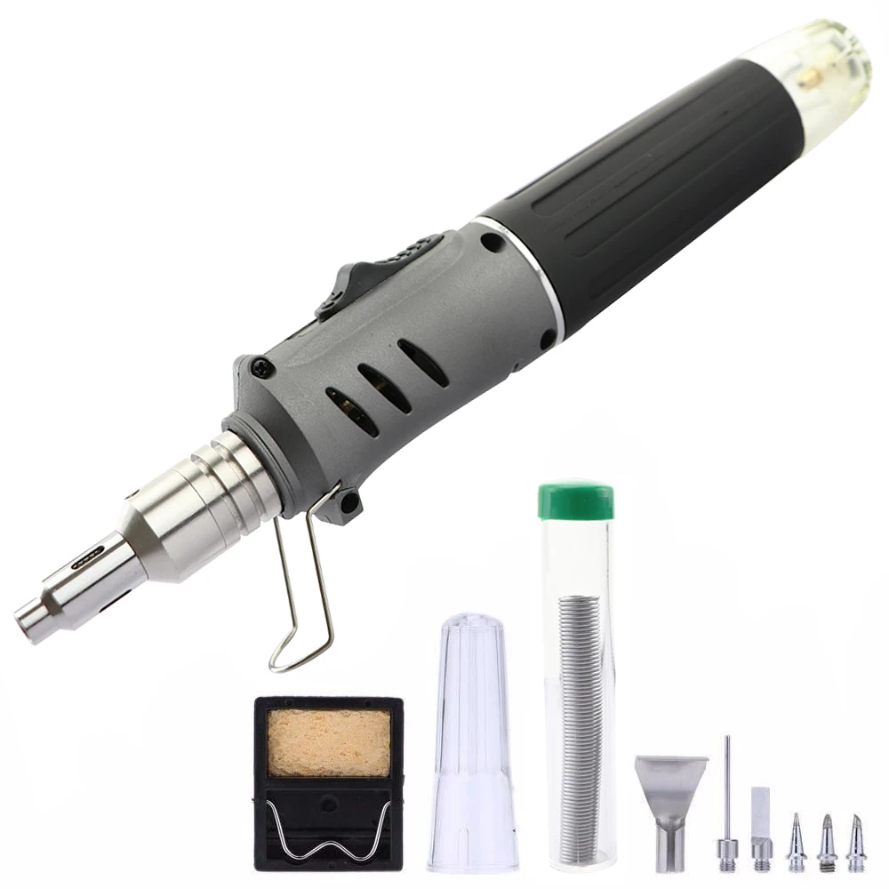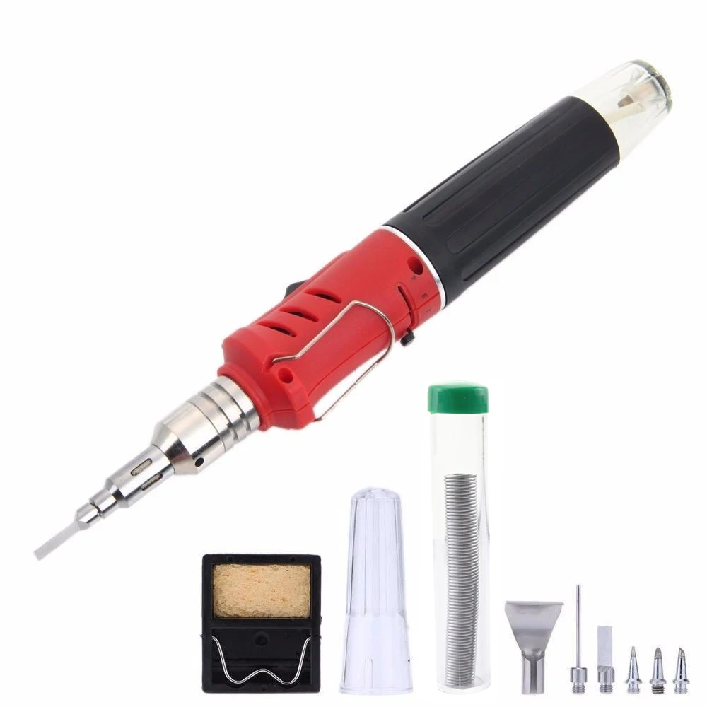Профессиональный бутановый Газовый паяльник 10 в 1, беспроводной сварочный фонарь, набор инструментов для припоя, высокое качество Особенности: Дизайн в стиле пера уникален, благороден и элегантен. Высокая производительность и отличная производительность. С функцией автозажигания для удобного использования. Компактный размер, легкий и портативный для переноски. Используйте газ в качестве своей мощности без ограничения напряжения и провода. Без ограничения местоположения. Может использоваться в качестве обычного паяльника, теплового пистолета или пистолета пламени, очень практично. Прозрачная конструкция обеспечивает легкий доступ к внутреннему газу. Характеристики: Цвет: разноцветный Материал: пластик Емкость наполнения: 26 мл Температура пламени: 1300 °C Температура паяльника: 450 °C Температура горячего взрыва: 500 °C Время использования: 30-40 минут Вес комплекта: 401 г/14,16 унций (с чехол) Размеры: 2,9*21,5 см/1,14 * 8.46in (диам. * H) Чехол Размеры: 25*13,5*5,5 см/9,84*5,31 * 2.16in (L * W * H) Размер посылка: 27,5*14*5,5 см/10,83*5,51*2,16 дюймов (Д * Ш * В) Вес посылка: 456 г/16,1 унций Примечание: Продукт еще не заполнен газом, пожалуйста, Пополняйте его перед использованием. В Чехол Цвет выбирается в случайном порядке (черный или синий), пожалуйста, имейте это в виду. Посылка: E0654 1 * фонарь 1 * наконечник для пайки 1 * наконечник Горячего Ножа 1 * Наконечник иглы 1 * наконечник с двумя краями 1 * гравировальный наконечник 1 * совок 1 * полимерный припой 1 * Чистящая губка + лоток + подставка