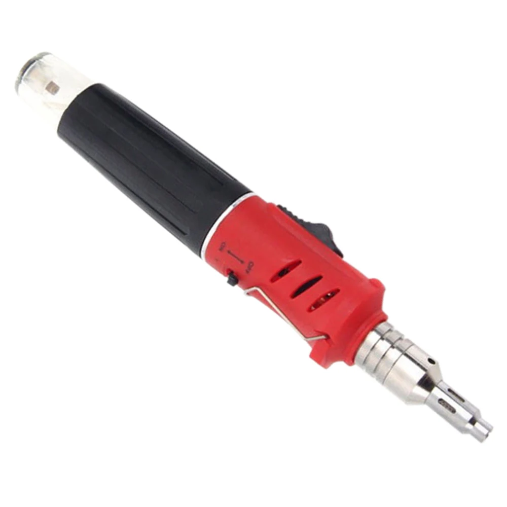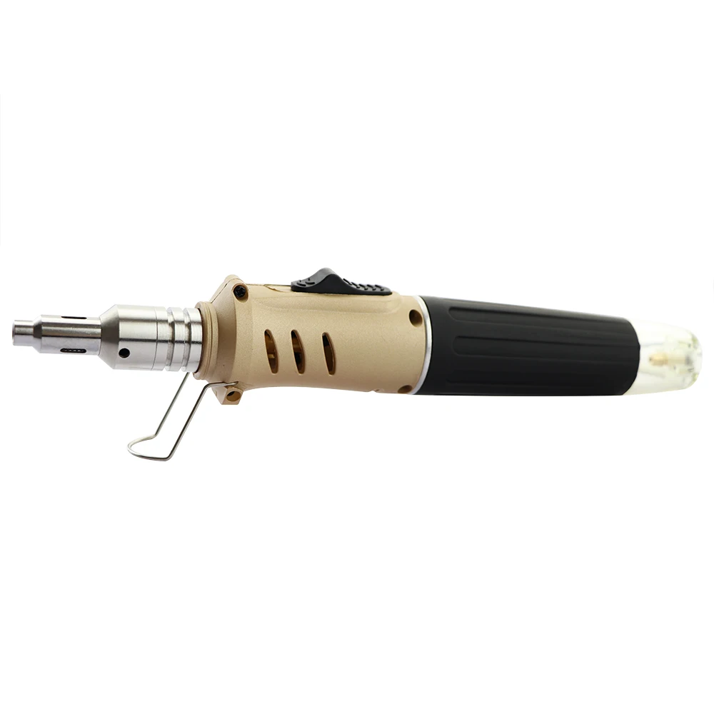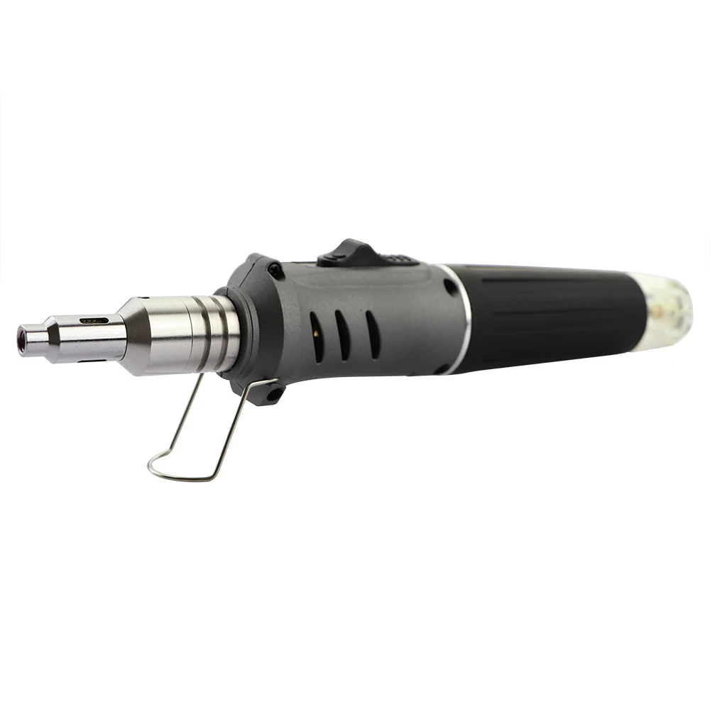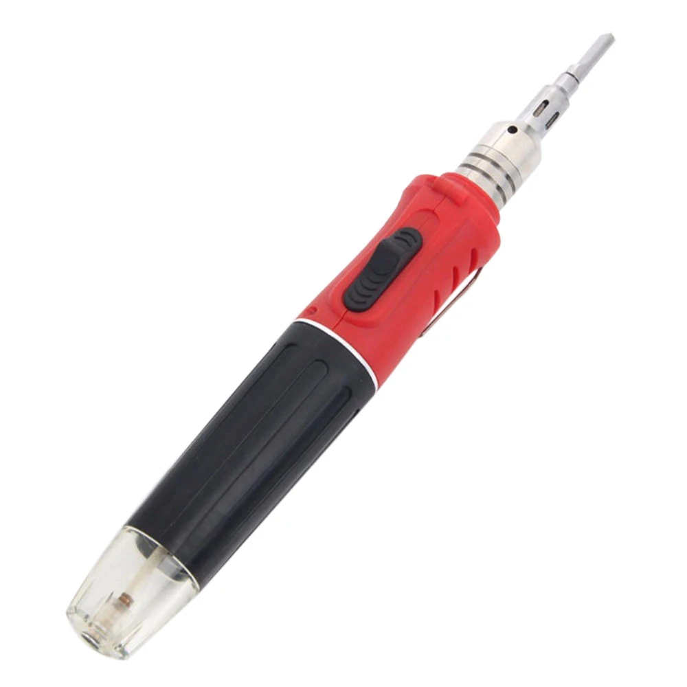 Профессиональный бутановый Газовый паяльник 10 в 1, беспроводной сварочный фонарь, набор инструментов для припоя, высокое качество Особенности: Дизайн в стиле пера уникален, благороден и элегантен. Высокая производительность и отличная производительность. С функцией автозажигания для удобного использования. Компактный размер, легкий и портативный для переноски. Используйте газ в качестве своей мощности без ограничения напряжения и провода. Без ограничения местоположения. Может использоваться в качестве обычного паяльника, теплового пистолета или пистолета пламени, очень практично. Прозрачная конструкция обеспечивает легкий доступ к внутреннему газу. Характеристики: Цвет: разноцветный Материал: пластик Емкость наполнения: 26 мл Температура пламени: 1300 °C Температура паяльника: 450 °C Температура горячего взрыва: 500 °C Время использования: 30-40 минут Вес комплекта: 401 г/14,16 унций (с чехол) Размеры: 2,9*21,5 см/1,14 * 8.46in (диам. * H) Чехол Размеры: 25*13,5*5,5 см/9,84*5,31 * 2.16in (L * W * H) Размер посылка: 27,5*14*5,5 см/10,83*5,51*2,16 дюймов (Д * Ш * В) Вес посылка: 456 г/16,1 унций Примечание: Продукт еще не заполнен газом, пожалуйста, Пополняйте его перед использованием. В Чехол Цвет выбирается в случайном порядке (черный или синий), пожалуйста, имейте это в виду. Посылка: E0654 1 * фонарь 1 * наконечник для пайки 1 * наконечник Горячего Ножа 1 * Наконечник иглы 1 * наконечник с двумя краями 1 * гравировальный наконечник 1 * совок 1 * полимерный припой 1 * Чистящая губка + лоток + подставка