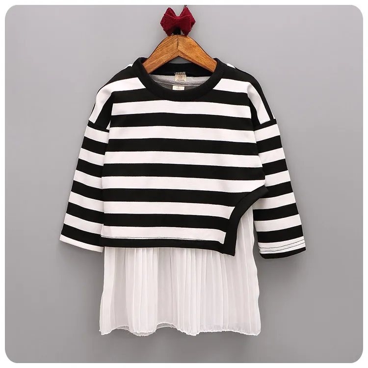 черно-Белая Полоса Из Двух частей Минни Осень Девочка Платье Девушки Платья Балетной Пачки Infantil Disfraz Одежда Китай Детская Одежда для Продажи