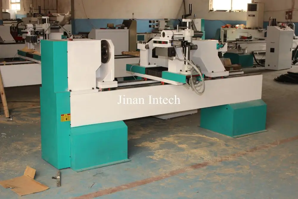 Цзинань ИНТЕКГорячая Распродажа, простой в эксплуатации китайский токарный станок/бейсбольная летучая мышь cnc токарный станок по дереву лахта, своего рода деревообрабатывающий токарный станок с ЧПУ, по сравнению с полуавтоматическим токарным станком по дереву, он имеет более высокую точность и прост в эксплуатации.WГрубо используется для изготовления деревянных лестничных поручней, ножек стола, диванных ножек, бейсбольной летучей мыши и так далее.АDd шпинделя,Он также может гравировать чертежи на цилиндре.