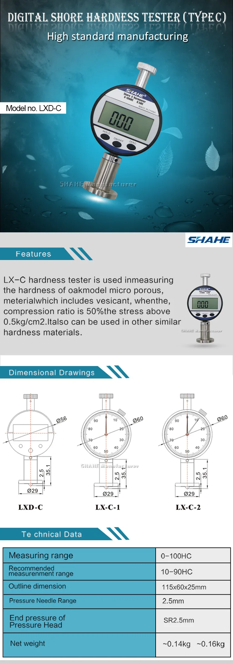 LXD-C Цифровой Твердомер используется в измерения твердости дуба модель микро материала, который включает в себя весикант в тех случаях, когда Компрессия-50%, напряжение выше 0,5 кг/cm2. Он также может быть использован в других аналогичных твердости материалов.