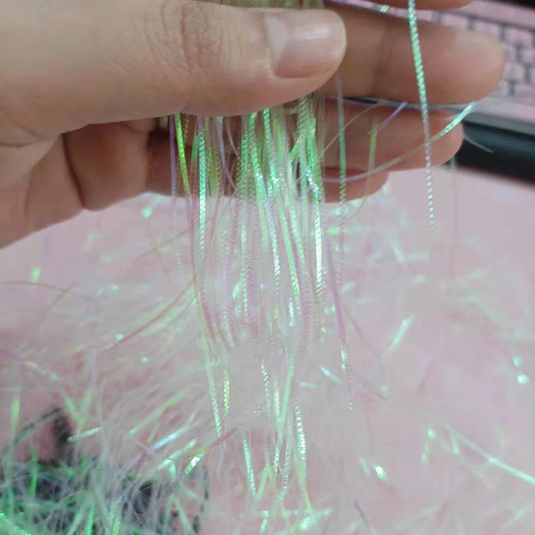 Особенности: Это Радужная вспышка, которая привлекательна. Нити рифленые так, что когда он отражает светильник, Он имитирует чешуйки рыбы. При добавлении нескольких нитей этой прочной вспышки к крылу или хвосту, а также к трикотажной резинке или телу для создания неотразимого узора.