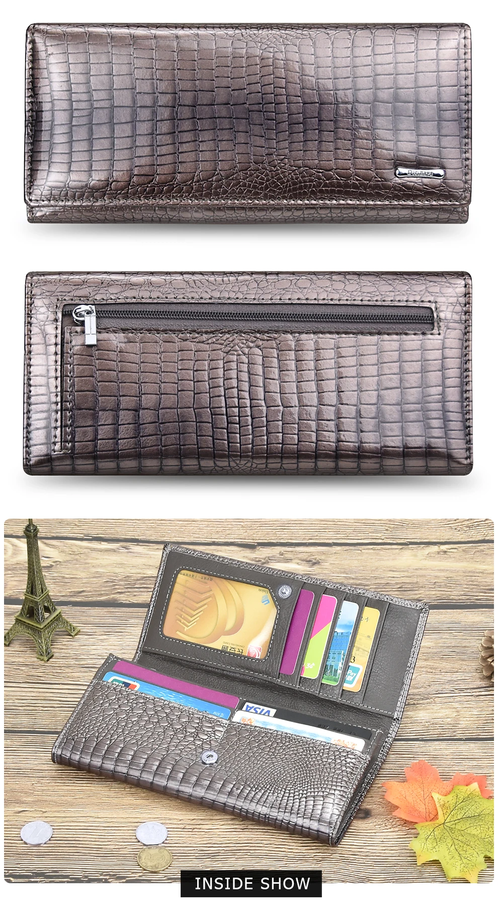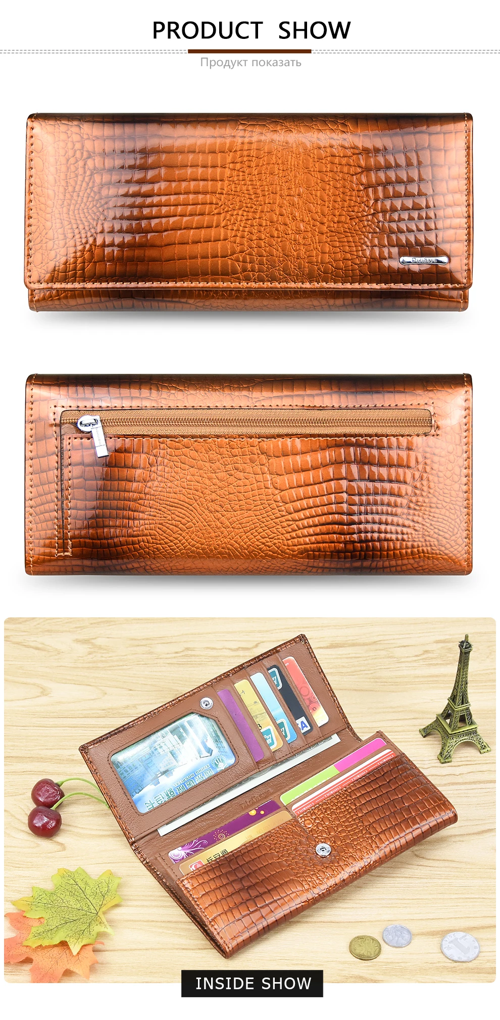 Новый элегантный Дамский Длинный кошелек с золотыми перфорацией и листьями из
