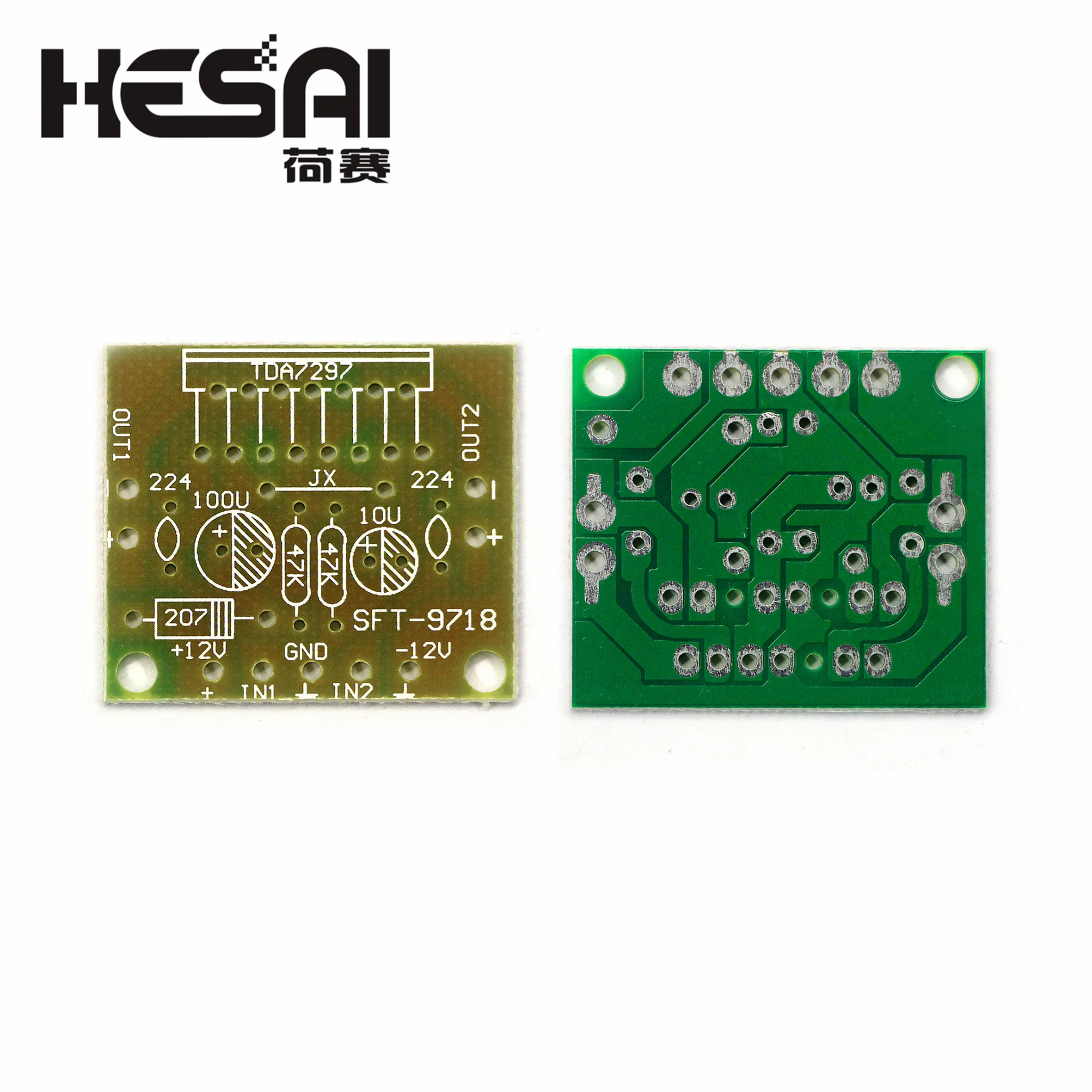 После последней версии TDA7297 чистый уровень усилитель части платы, люкс, счетчик цепи, эффективно предотвратить вызванные электропитания отвечают чип выгореть, элемент к макету, расстояние между отверстиями свинца является стандартным 3,96 мм, облегчают прямое соединение свинца или добавляют Стандартный терминал на борту