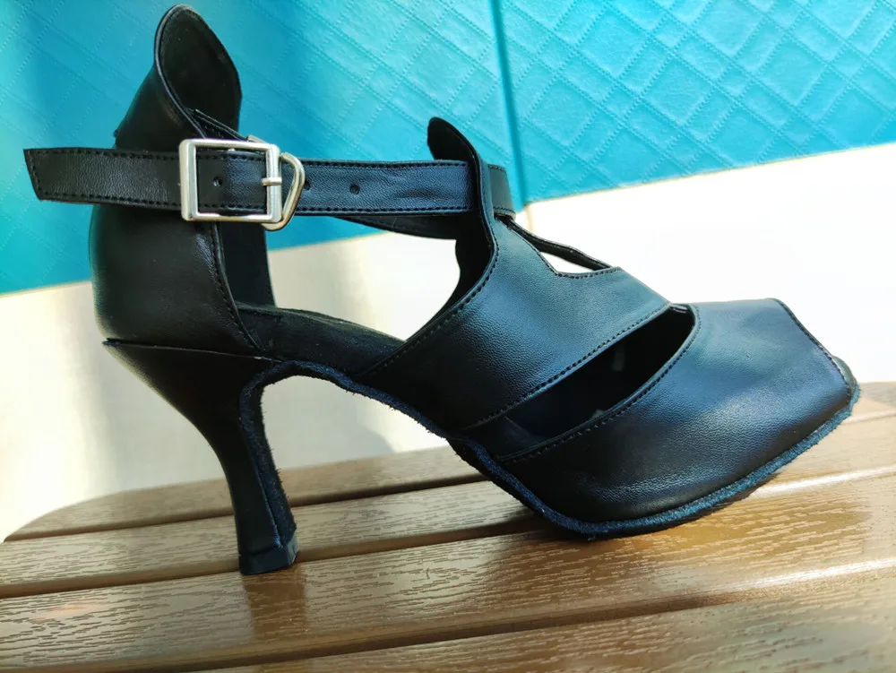 Evkoodance/2017 г. Черная кожаная обувь с закрытым носком, на мягкой подошве 7 см, женская обувь для латинских бальных танцев, Женская Evkoo-390