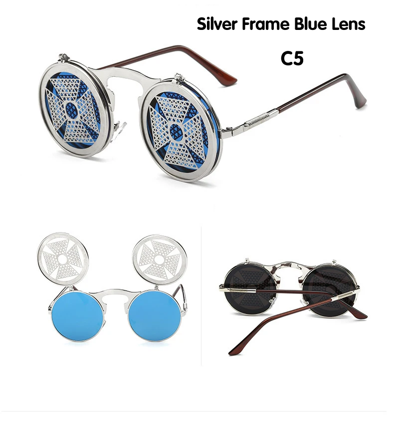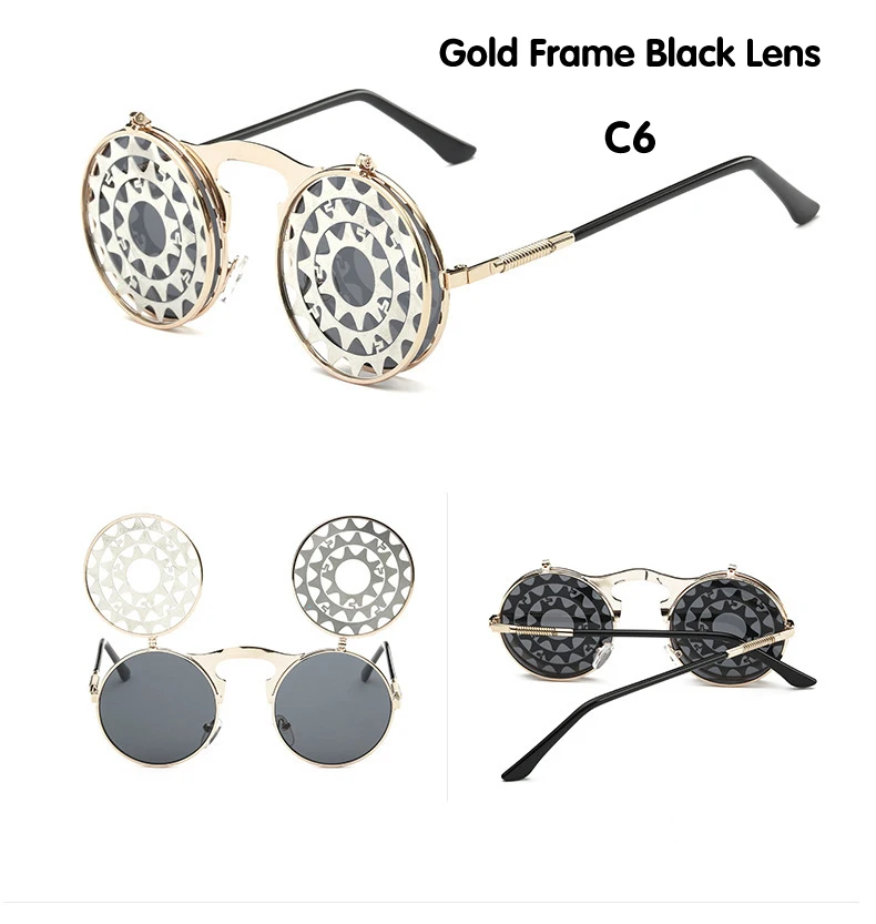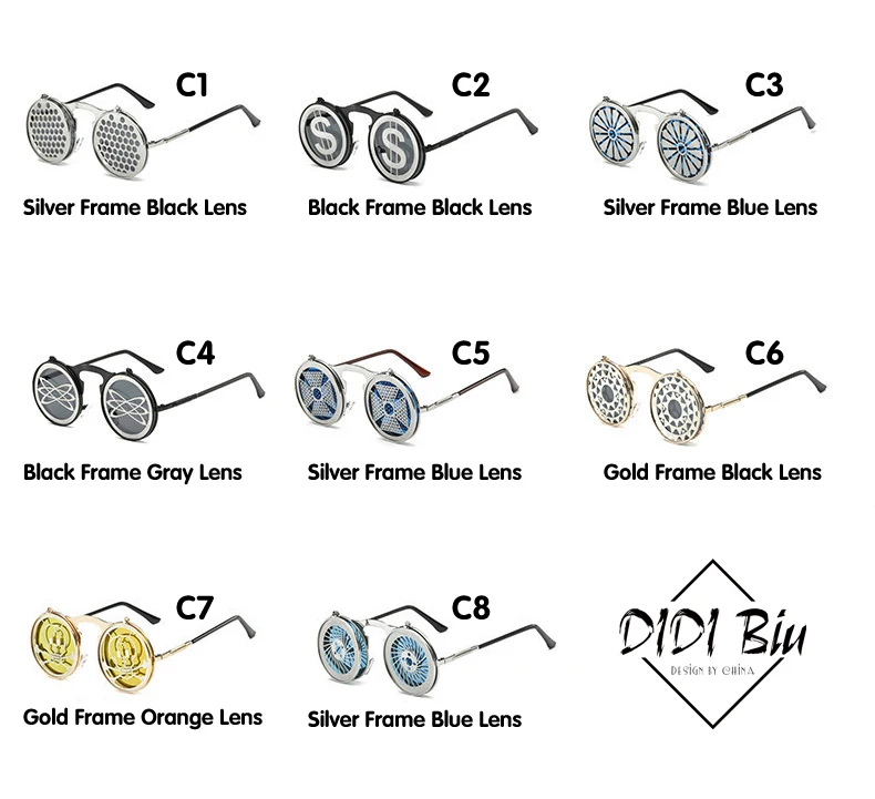 Мужские солнцезащитные очки DIDI Lovers, круглые солнцезащитные очки на застежке, роскошные Брендовые очки в стиле стимпанк с плоской зеркальной линзой, очки из сплава для вечеринок U458