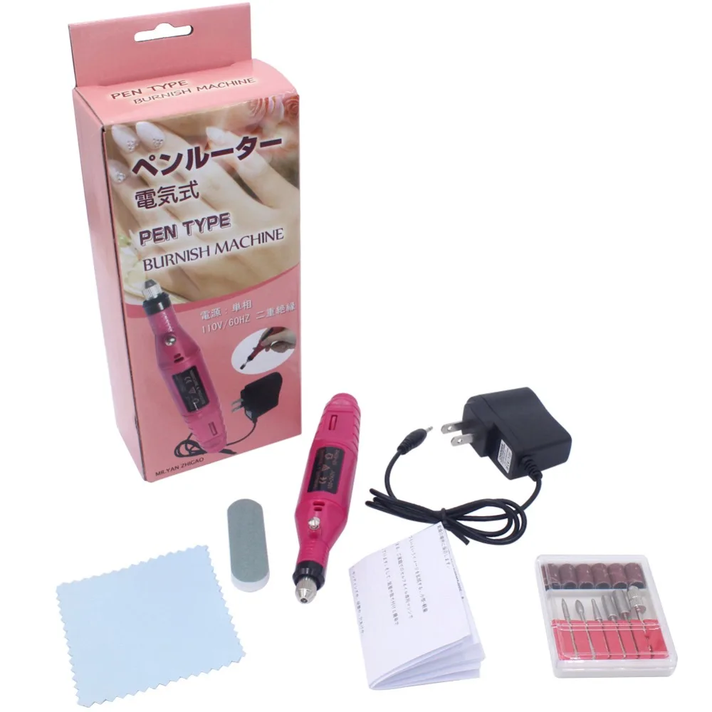 Набор для маникюра и педикюра с переменной скоростью, 1 шт., электрическая ручка для нейл-арта 1 × набор сверл для ногтей, пилочки для ногтей Адаптер переменного тока-1 шт. Пилка для ногтей-1 шт.