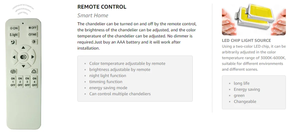 О: Эта люстра имеет плавное затемнение и может регулироваться с помощью пульта дистанционного управления без необходимости приобретения отдельного диммера. Он не только затемняет, но и регулирует цветовую температуру (диапазон регулировки: 3000-6000 K)