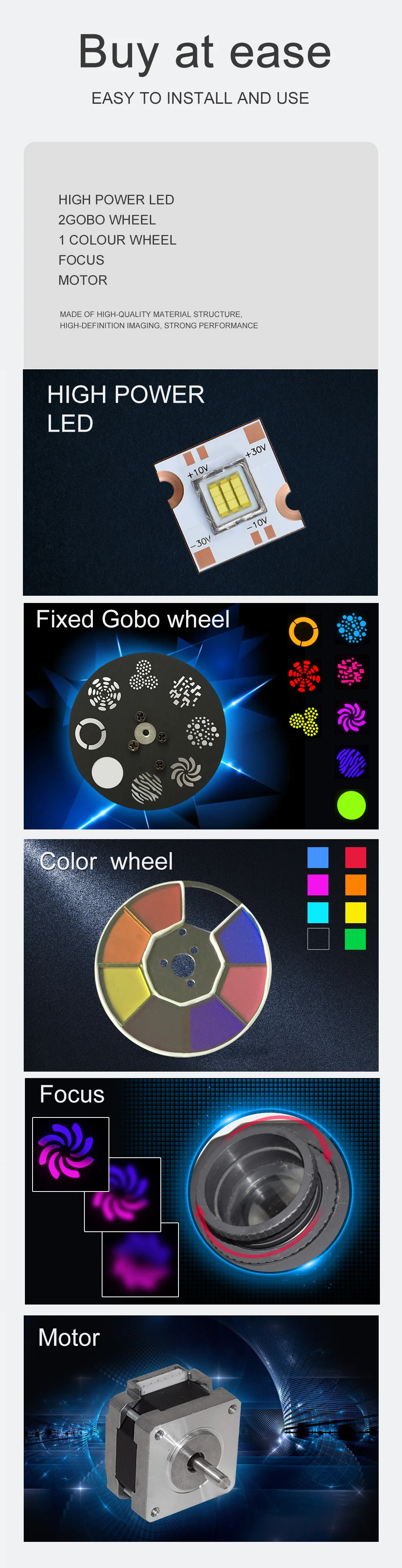 Колесо Gobo: 8 gobos + shake + скорость вращения Gobo. Бесконечное вращение