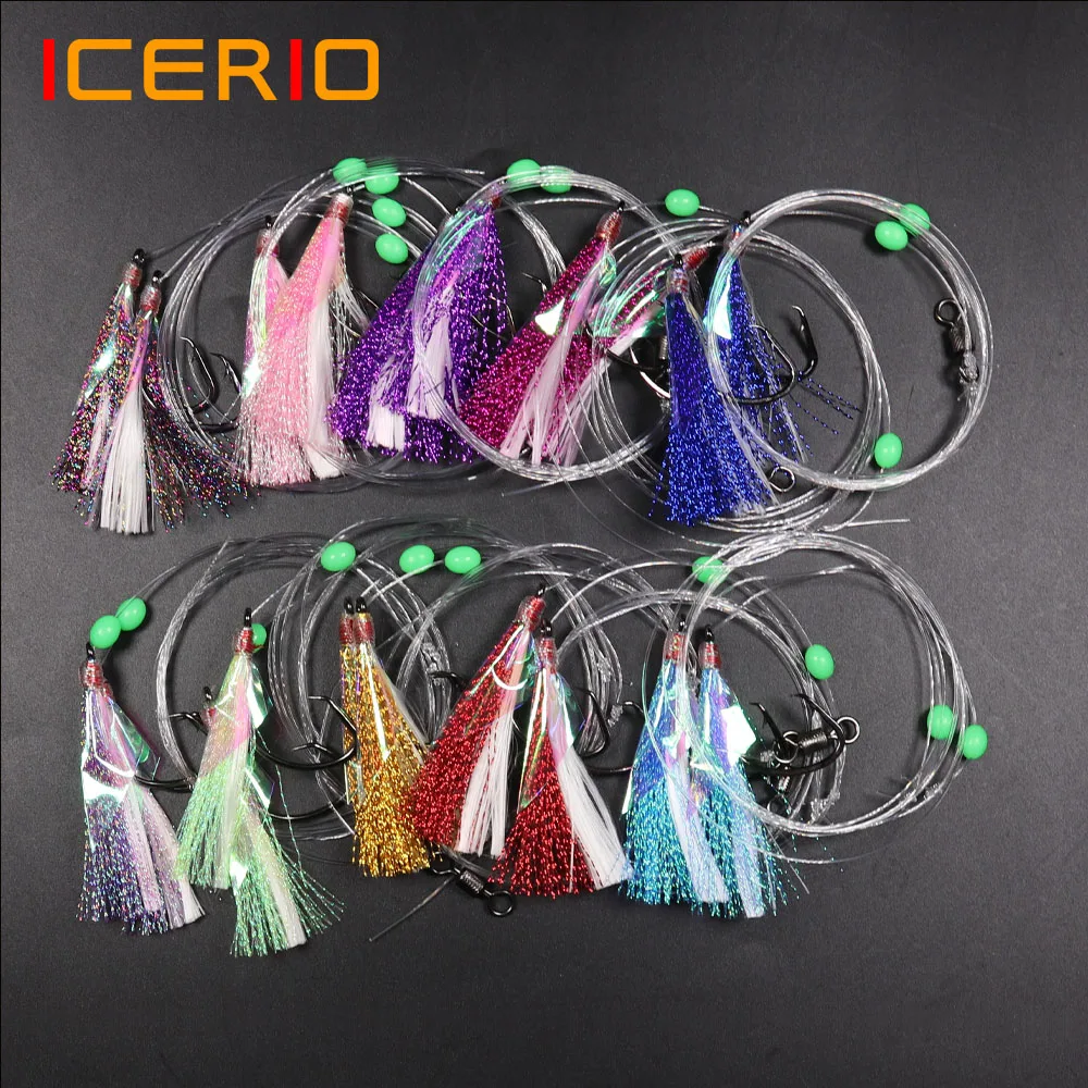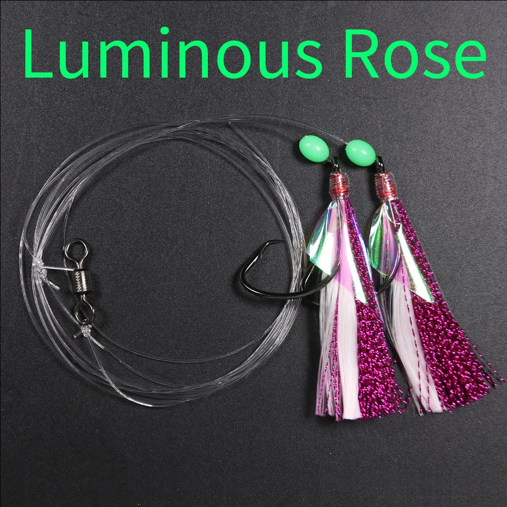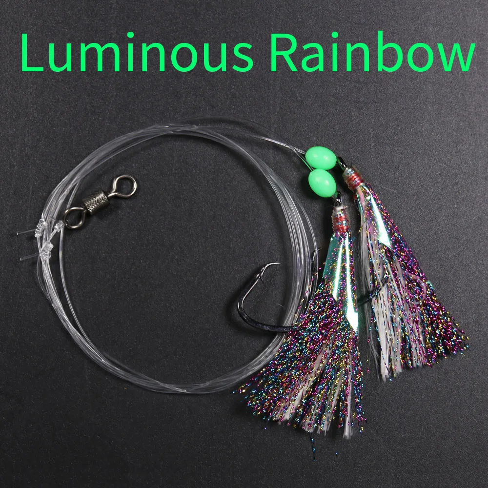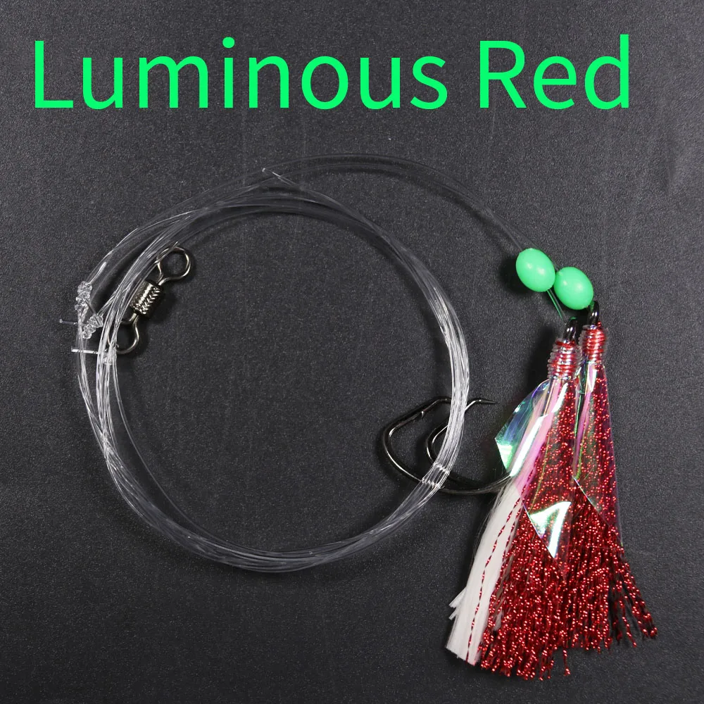 5 сумок светящиеся Сабики буровые установки с 2 крючками флэш-приманка из рыбьей кожи Морская рыбалка снаппер буровые установки с баррель поворотный сельдь Размер 5/0