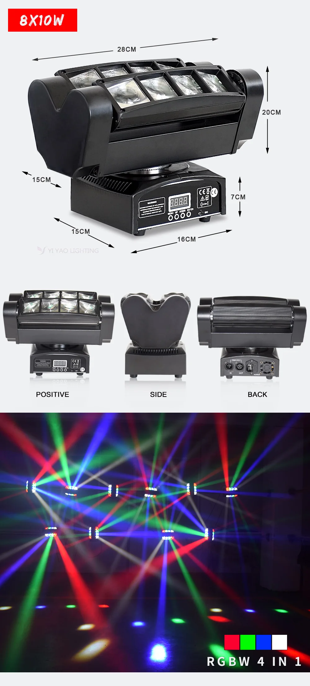 8x10W RGBW 4IN1Mini светодиодный светильник-паук