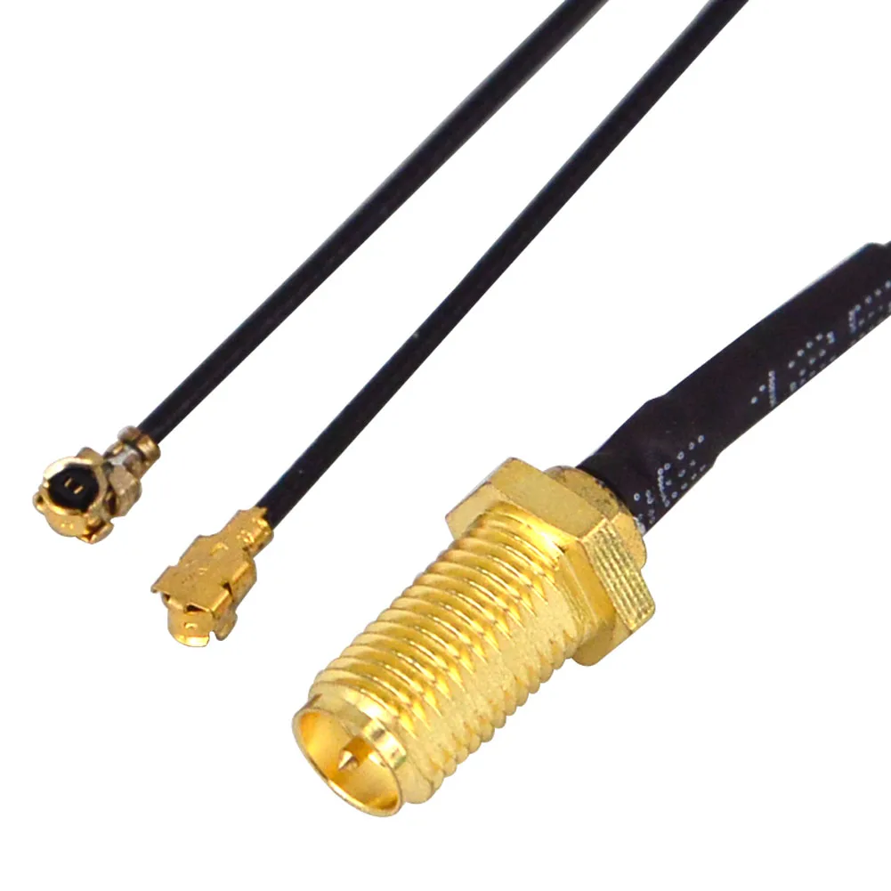 Y Тип RP SMA female (штырь в центре, резьба снаружи) на двойной ufl IPX female коаксиальный Соединительный пигтейльный кабель