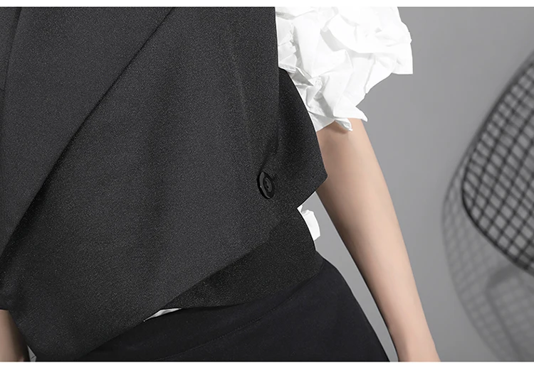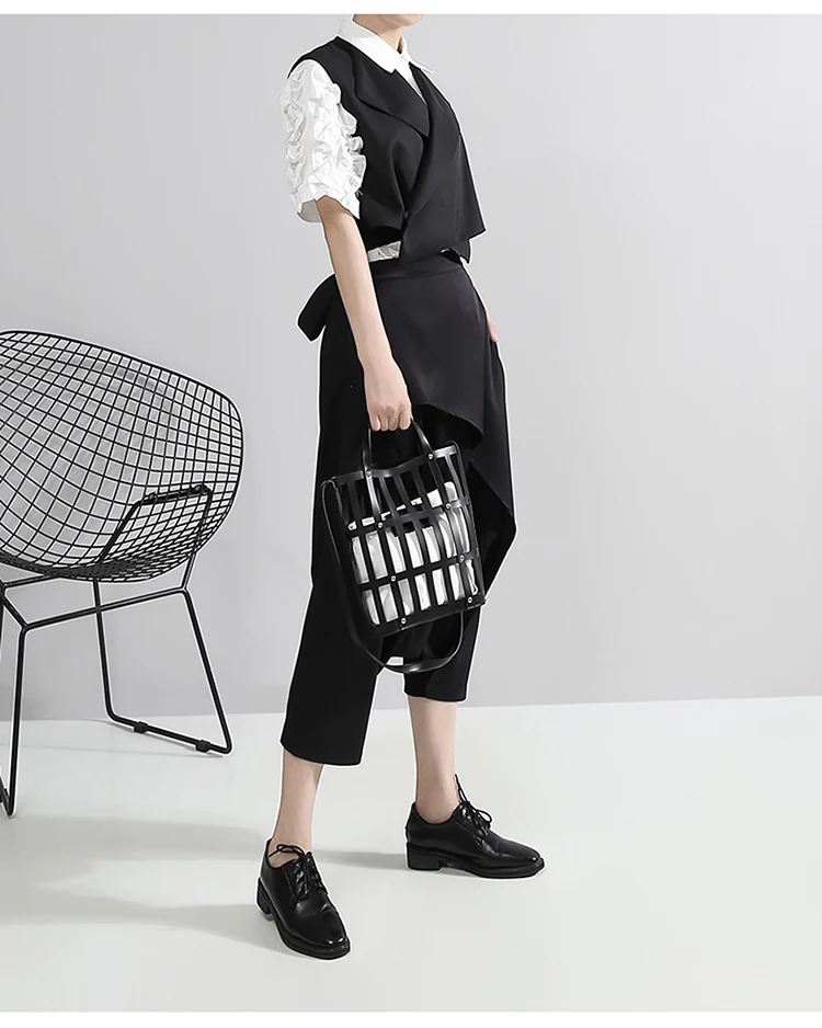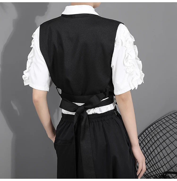 Корейский стиль, свободный размер, Женский Топ, однотонный черный жилет с поясом, без рукавов, v-образный вырез, Женский Уникальный Повседневный жилет, стиль уличной одежды 1851