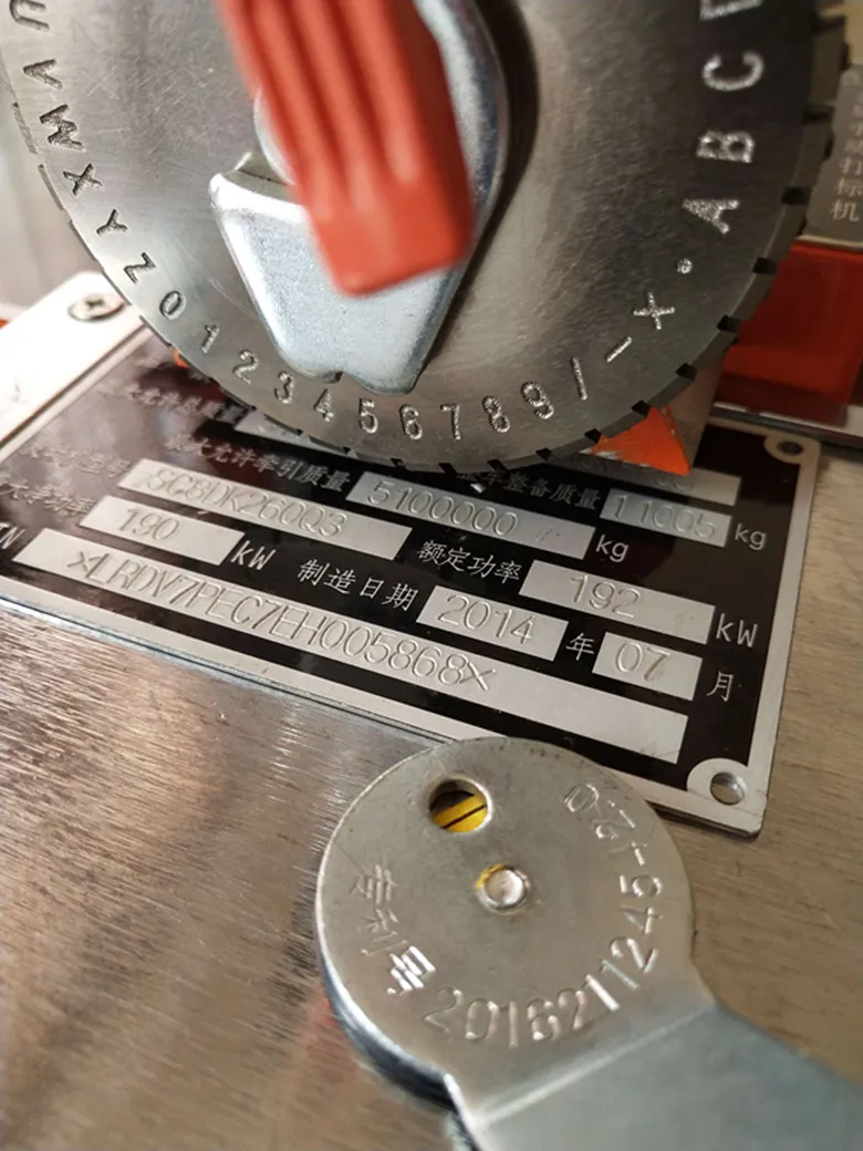 Параметр:Материал: хромированная сталь 12CrMoТвердость: >60 градусовТолщина: 6 мм, (№ 6 шрифт 7 мм)Диаметр: 80,5 ммОтверстие вала: 14,1 ммПогрешность позиционирования всего круга символьного кода составляет ± 0,10 мм (во избежание перекрытия напечатанных символов или неконтролируемого кернинга)Количество символов: 40Английские буквы: A B C D E F G H I J K L M N 0 P Q R S T U V W X Y ZАрабские цифры: 1 2 3 4 5 6 7 8 9 0Простая нотация: · ×/Теоретические срок службы: один символ код нержавеющая сталь табличка может быть напечатано более 200000 раз непрерывноХарактеристики высоты шрифта символа:Изображение:
