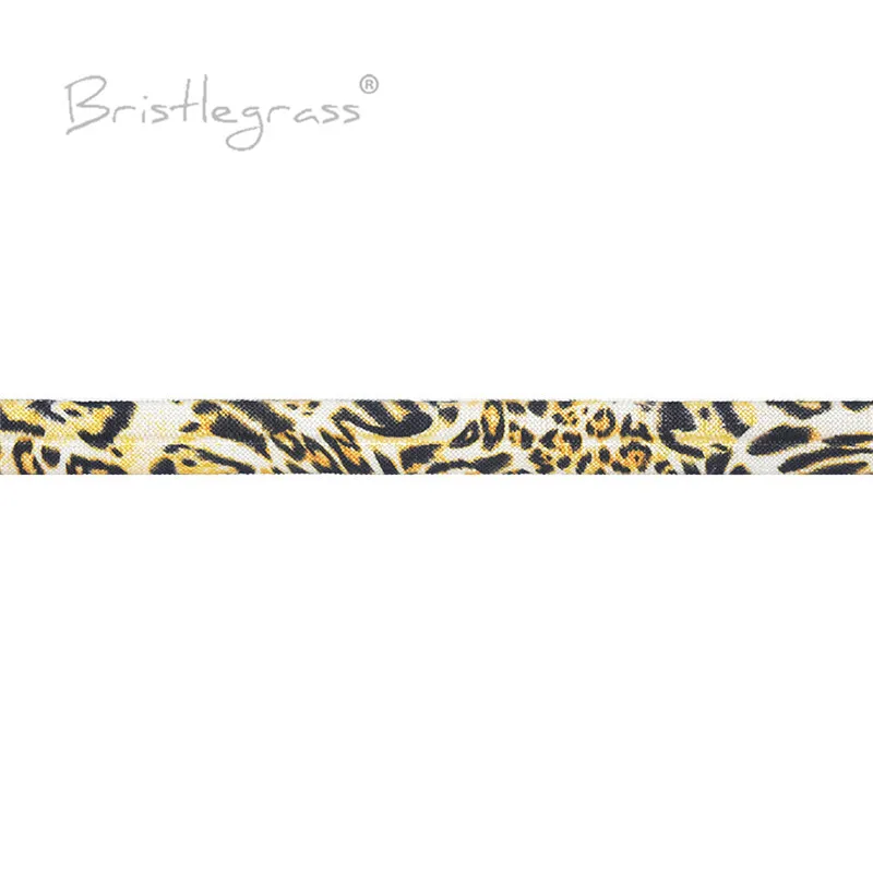 BRISTLEGRASS 5 ярдов 5/8 "15 ммbrownleopardprint складывается поверх резинок FOE Spandex атласные ленты Повязка На Голову Галстук-пачка платье Шитье