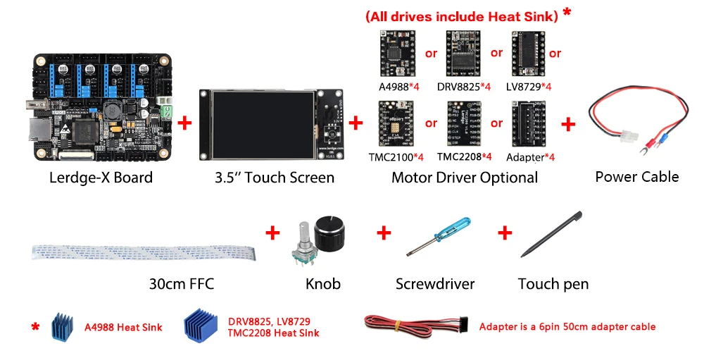 1. Плата Lerdge-X с 4 драйверами A4988 * 1 шт.