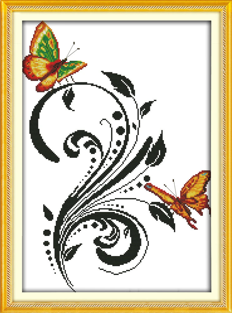 Joy Sunday Цветочные стильные наборы узоров с двумя бабочками, быстро и легко сшитыми крестиками для вышивания нитью, цветная диаграмма