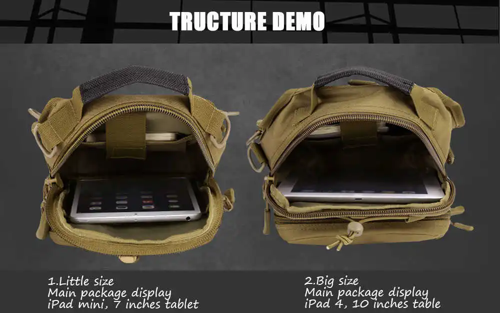 Большой размер: 22*29*12 см Маленький размер: 20*26*11 см Материал: антиразрывный нейлон Подкладка: ткань с водонепроницаемым покрытием Объем: маленький размер можно поставить iPad mini, 7 дюймов планшет Функция: нагрудная сумка, сумка с ручками, рюкзак, сумка для кроссби Подходит: спорт, туризм, альпинизм, работа Плечевой ремень можно регулировать от 85 см до 155 см | |