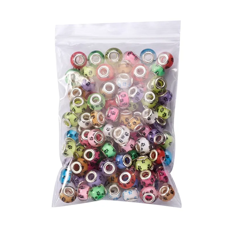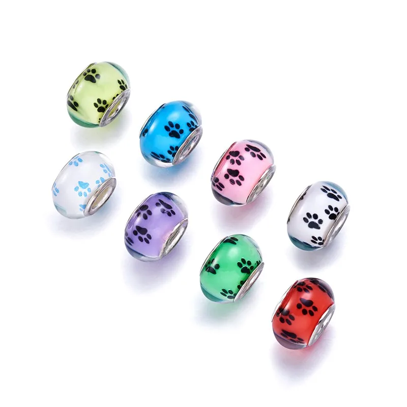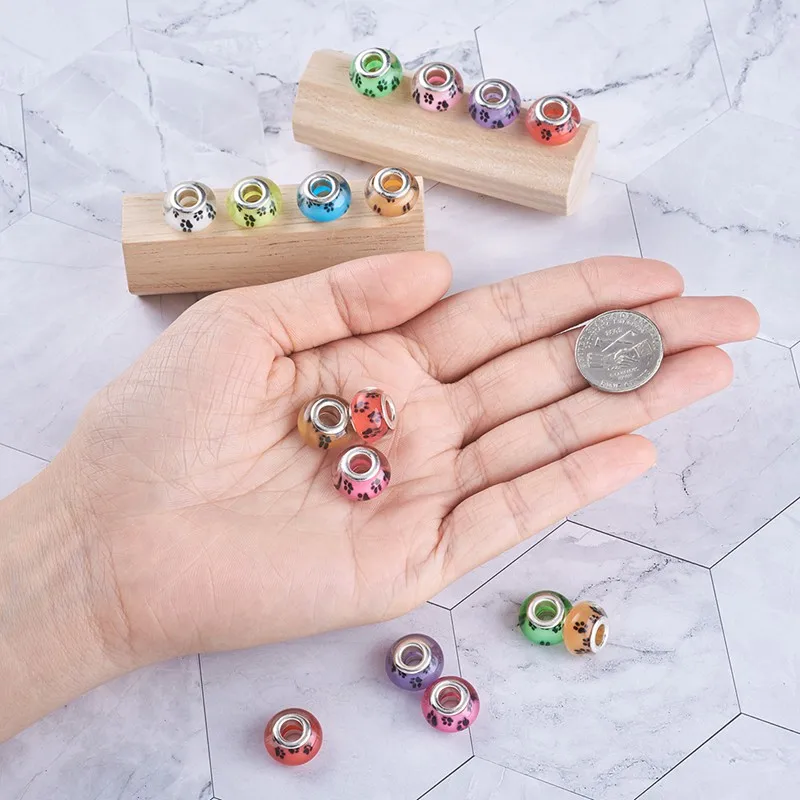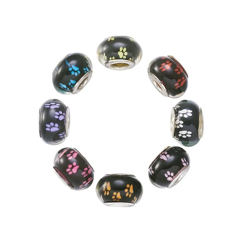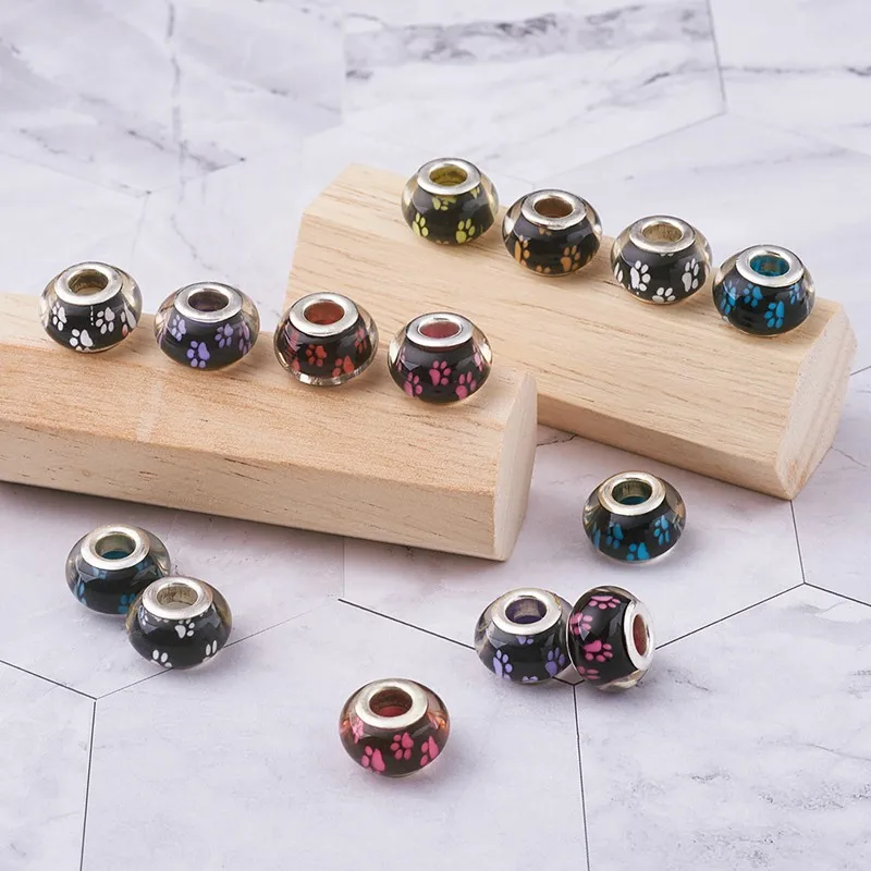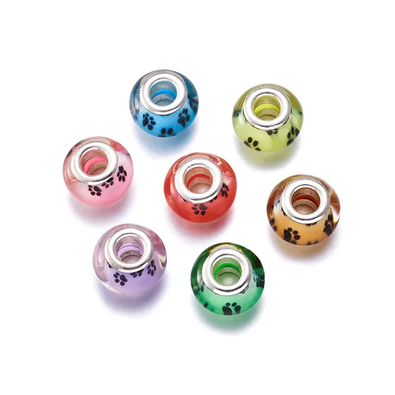 PandaHall 100 шт Акриловые Европейские Бусины собачья лапа узор большое отверстие Rondelle смешанные цвета для самостоятельного изготовления ювелирных изделий ремесло 14x9 ~ 10 мм