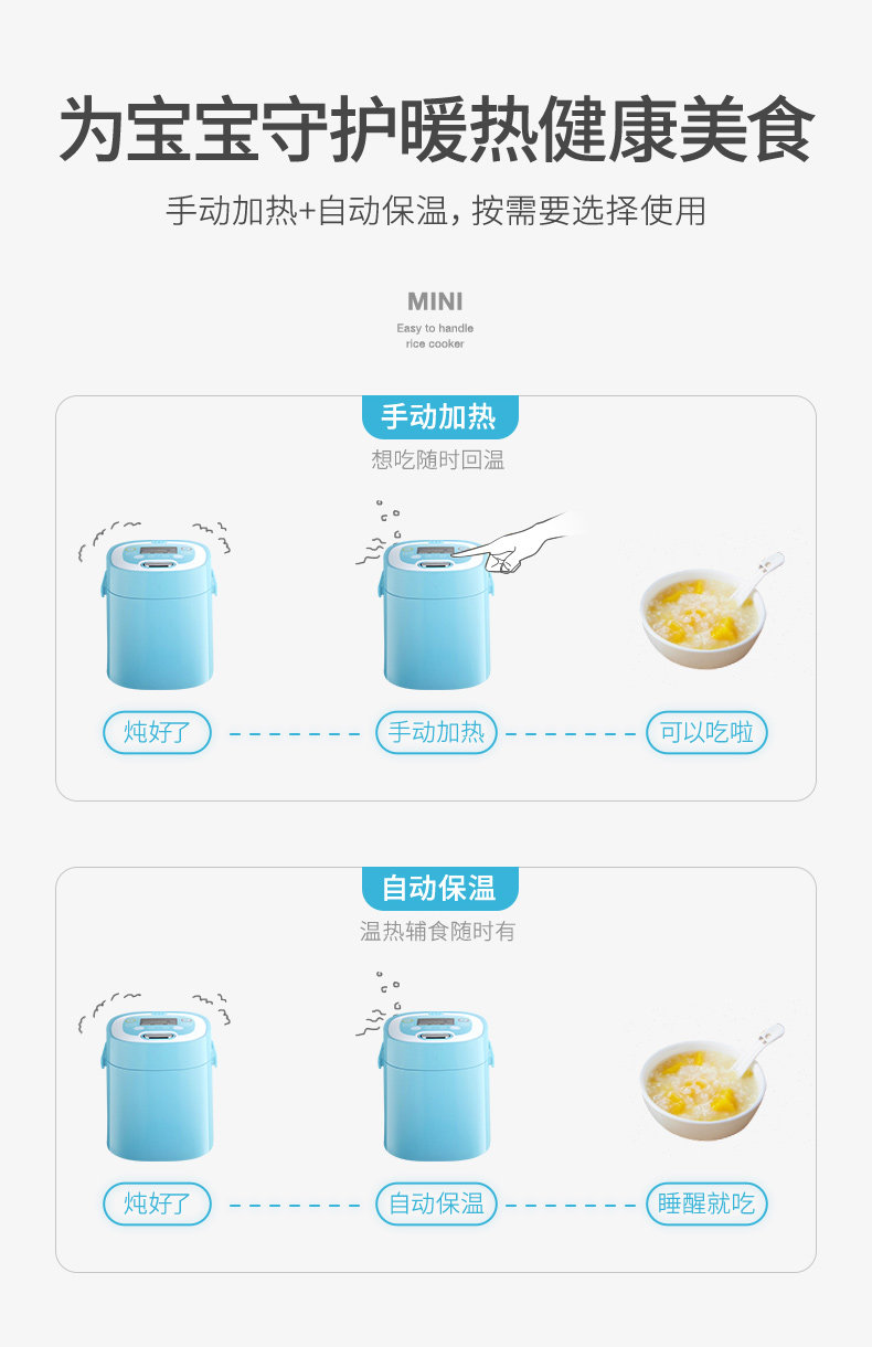 Мини-плита электрическая-рисоварка умная кухня маленькая Горячая продажа Светодиодная-дисплей Синяя рисоварка