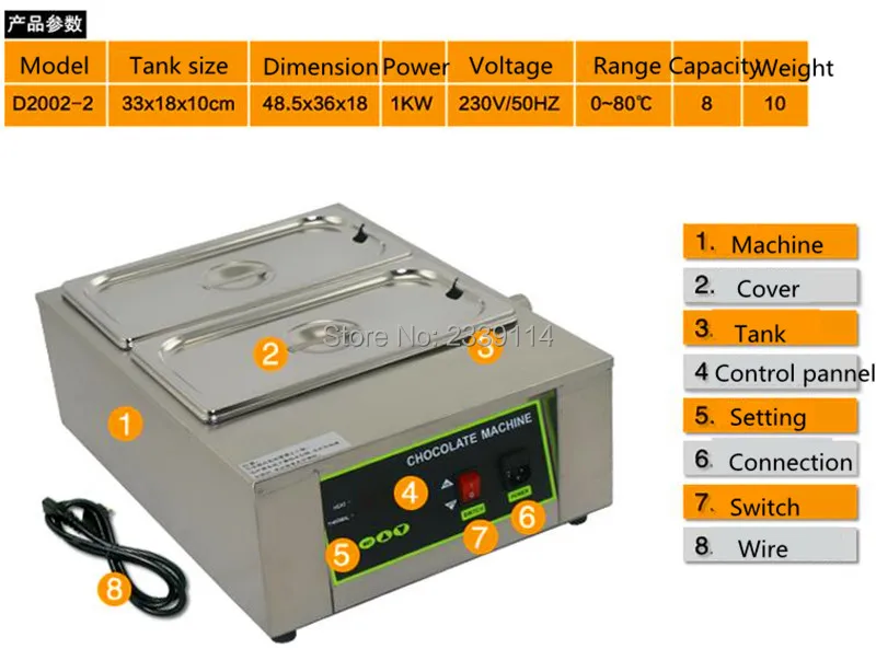 1. Последняя версия машины для плавления шоколада, использование нагрева воды 2. Может регулировать температуру нагрева шоколада, 0-80 °C контроль температуры 3. Новые стили, высокое качество, удобные США и высокая стоимость 4. DIY шоколадный магазин ручной работы, домашние пользователи choicing