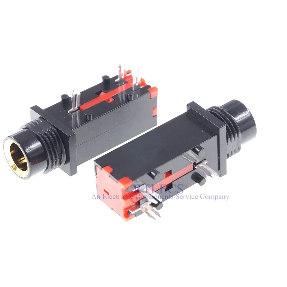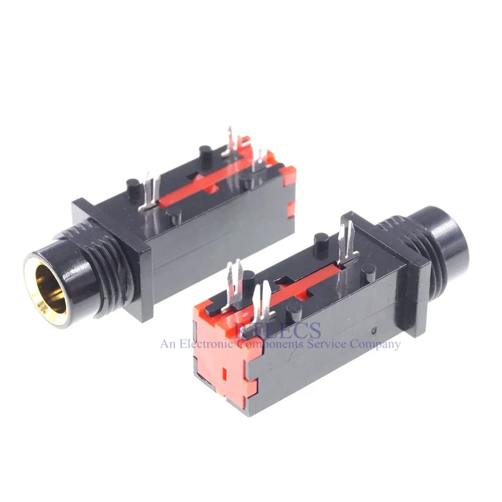 0,250 "6,35 мм стерео аудио разъем Женский Разъем для наушников 3 жилы 3 контактный номер переключатель правый угол со сквозным отверстием под пайку