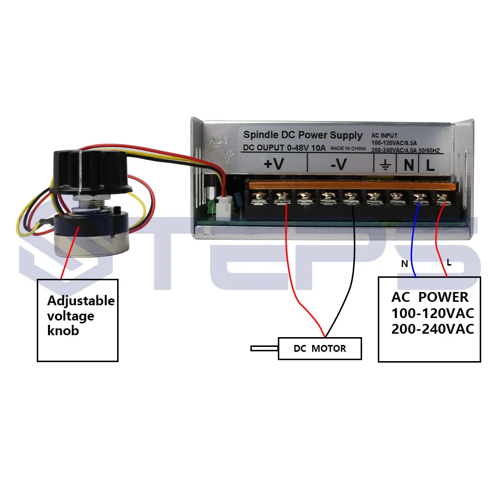 1. Рабочее напряжение: 12-48 В постоянного тока2. Скорость вращения: 3000-12000р/мин (12v-3000р/мин, 24v-6000р/мин, 36v-9000р/мин, 48v-12000р/мин)3. Патрон: часть длины резца (35 мм, содержащий гайки и сэндвич 43 мм)4. Мощность: 400 Вт5. Крутящий момент: 350mN.m6. Сопротивление изоляции:>2 мегома7. Диэлектрическая прочность: 400 В8. Диаметр: 52 мм9. Диаметр держателя оси: 16 мм10. Точность повторения: 0,01-0,05 ммИсточник питанияНазвание продукта: шпиндель постоянного токаВход: 110 В переменного тока/220 В переменного тока ± 15%Выход: 0-48VDC 10AНоминальная мощность: 480 ВтО вентиляторе: блок питания встроен в вентилятор вкл/выкл управляемый вентилятор автоматически в соответствии с рабочей температурой