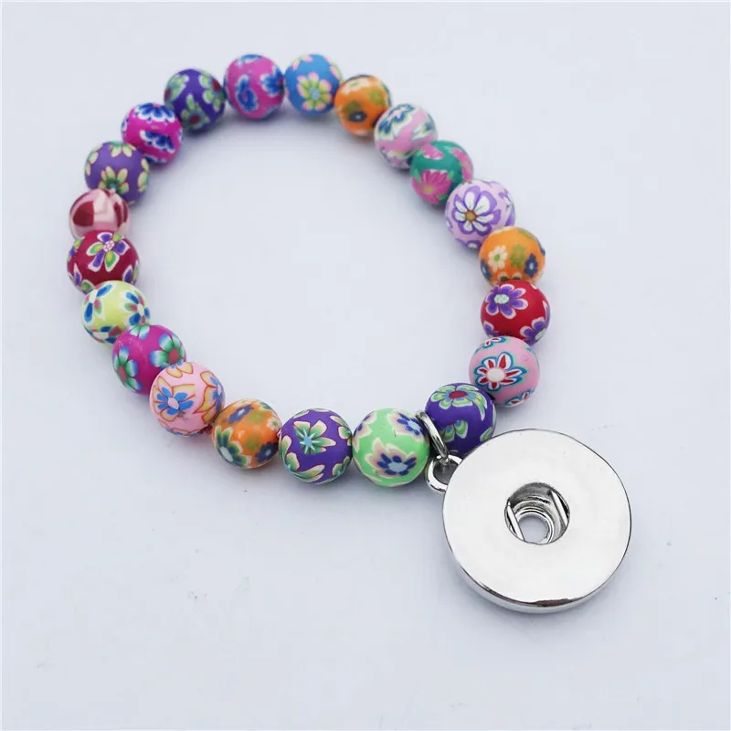 Детские разноцветные глиняные бусины для девочек, металлический браслет с кнопками 18 мм, ювелирное изделие длиной 15 см