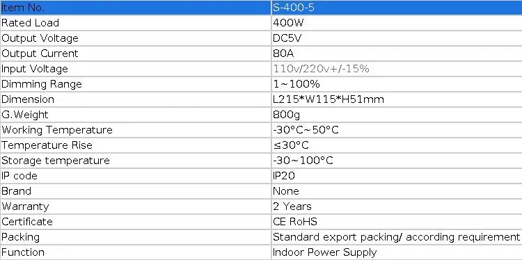 DC5V 80A 400W Светодиодный источник питания (10 шт)