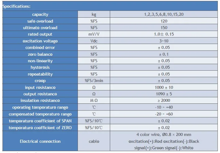 Особенности: ◆Емкость: 1 ~ 20 кг ◆Материал: алюминиевый сплав ◆ Тип: параллельный Тип луча Класс защиты: IP65 Применение: кухонные весы, пальмовые весы, ювелирные весы, Почтовые весы, рыболовные Весы, детские весы и другие электронные весы.