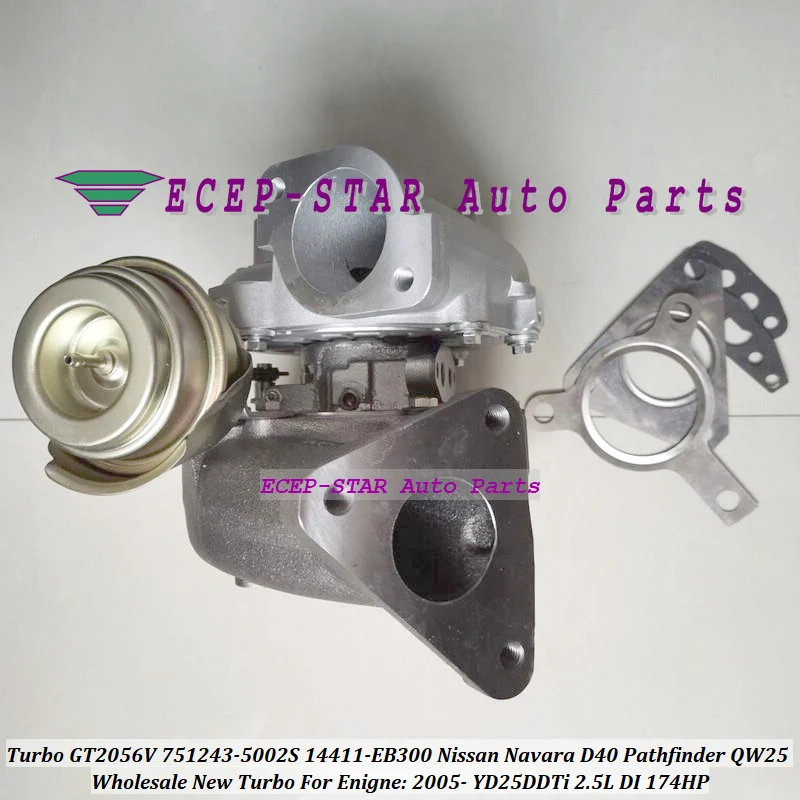 Турбо CHRA картридж ядро ofGT2056V 751243-5002S 75124314411-EB300 14411EB300TurbochargerДля NISSAN Navara D40;Pathfinder R51;QW25 YD25DDTI 2.5L 174HP 2005-06Товар 100% новыйМодель Турбо: Турбокомпрессор GT2056V