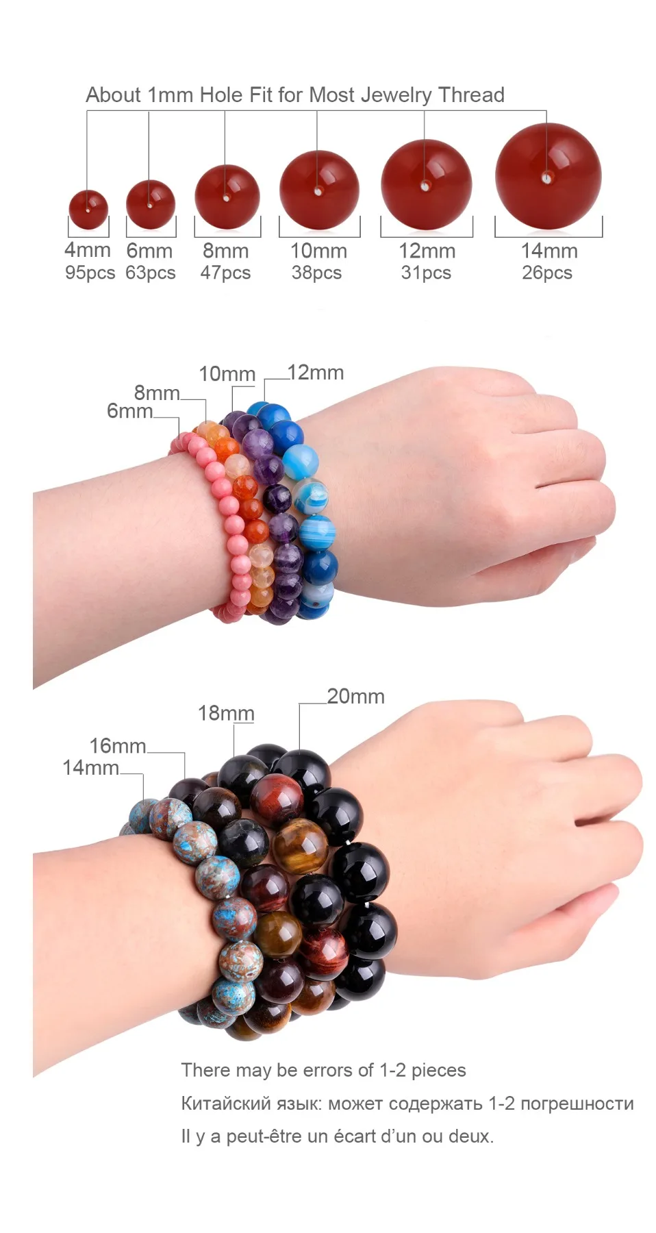 Количество бусин на прядь: посмотрите на этикетку диаметра изделия