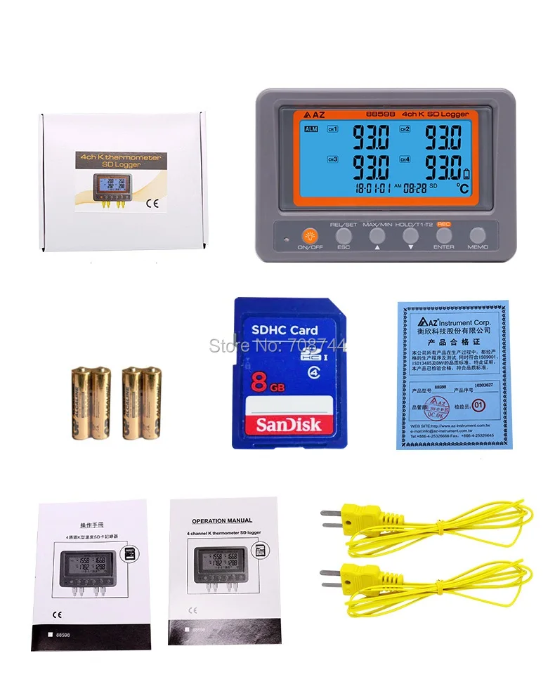Регистратор температуры термопары SD карта регистратор данных AZ-88598