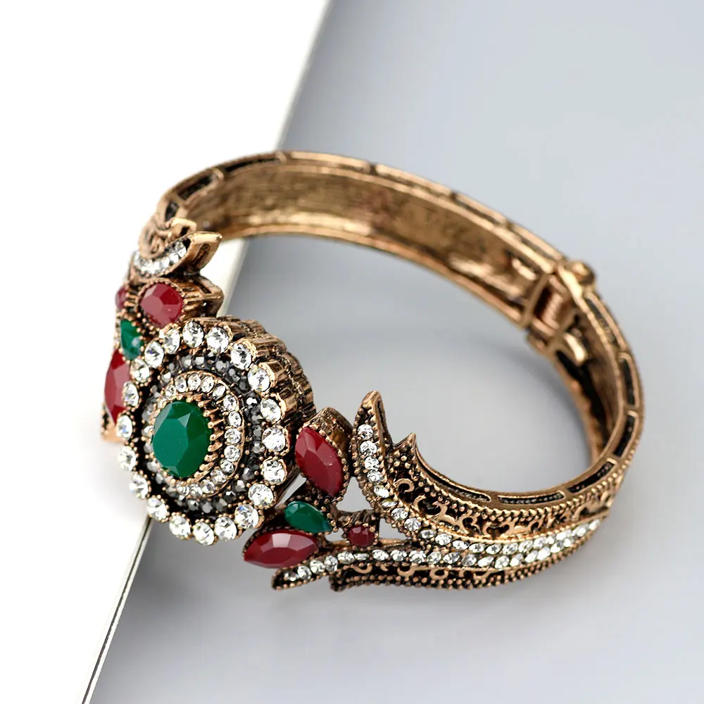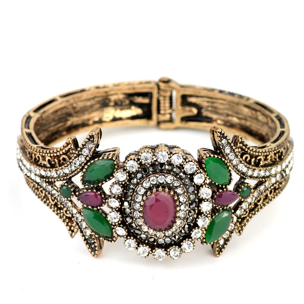 «Описание продукта: Винтажный турецкий Браслет-манжета для женщин, стразы вечерние ювелирные изделия из смолы ретро золотого цвета, ювелирные изделия для невесты 2020”