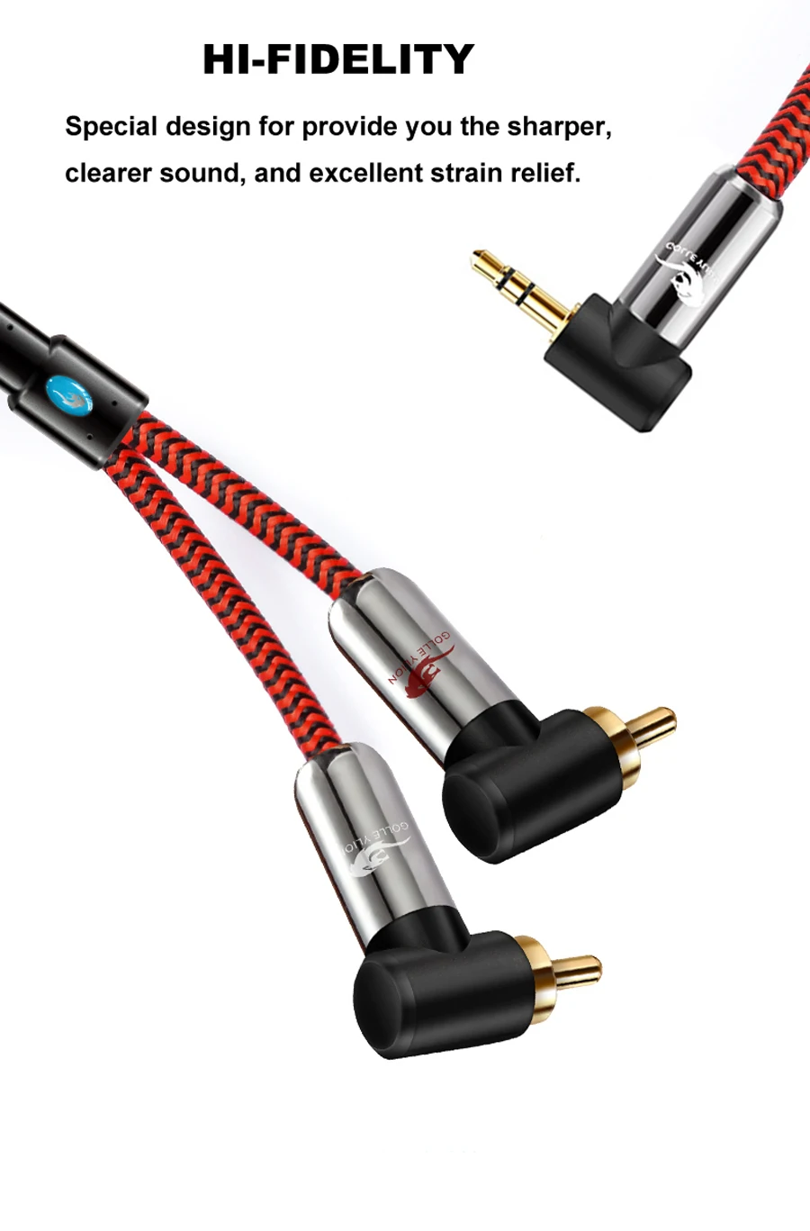 Connector: copper terminal with gold-plated, Zn alloy housing Conductor: High purity OFC, with copper and anti-foil double shielding Wire Insulation: Environmental PE