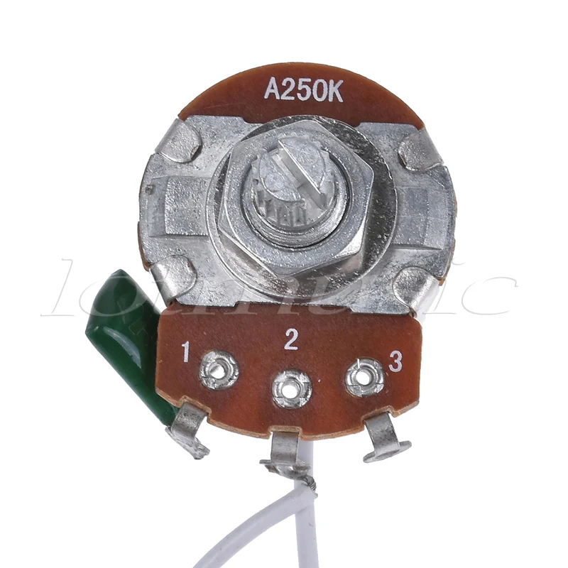 5-ходовой переключатель лезвия. Предпроводной жгут имеет 250 K Альфа четверть размера горшки с 15 мм валом для крепления к маринованной.