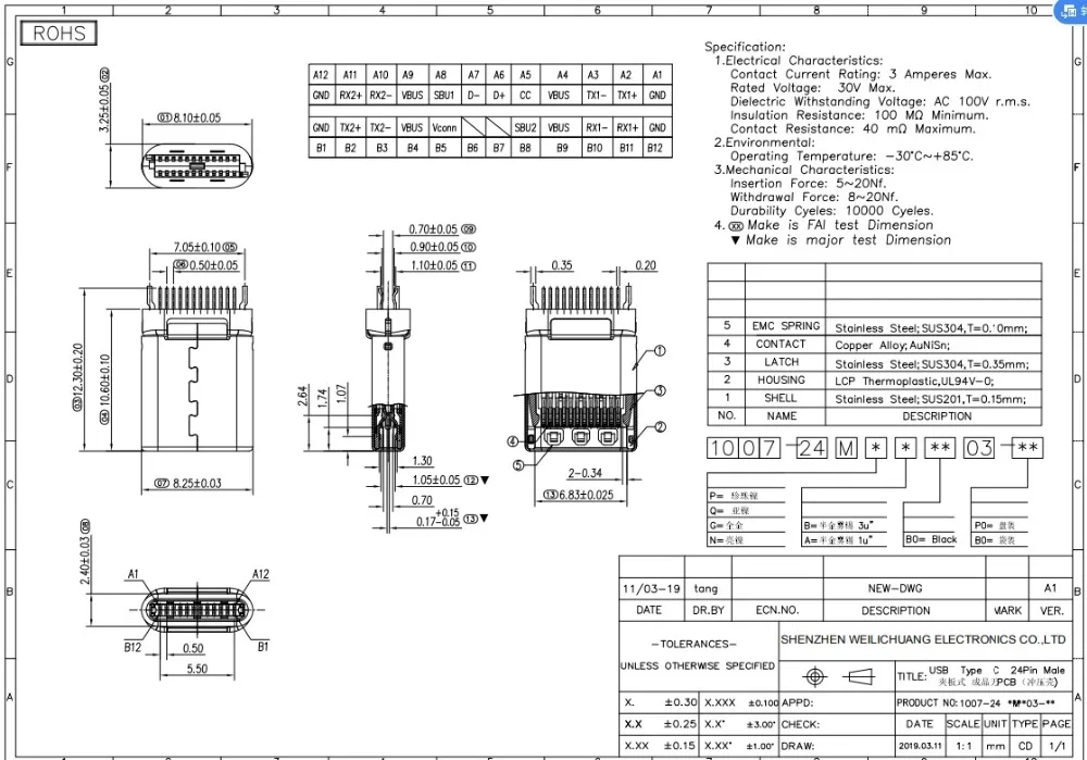 Разъем USB 3,1 Type C с 24 штыревыми разъемами для крепления шнура USB 3,1 версия штепсельной вилки 1.5A