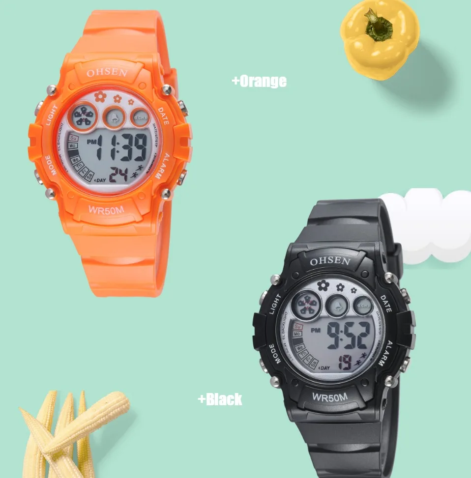 Японская Кнопка Maxell, более длительный срок службы Чехол из нержавеющей стали с логотипом laser OHSEN Резиновый ремешок хорошего качества, более удобный Прочный водонепроницаемый чехол для часов