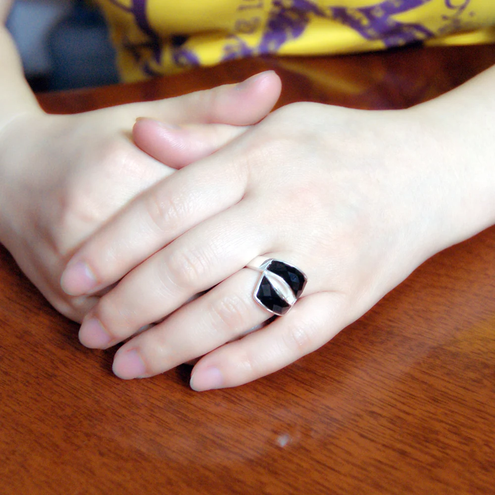 Мужское кольцо из серебра 100% пробы с натуральным черным камнем|Кольца| |