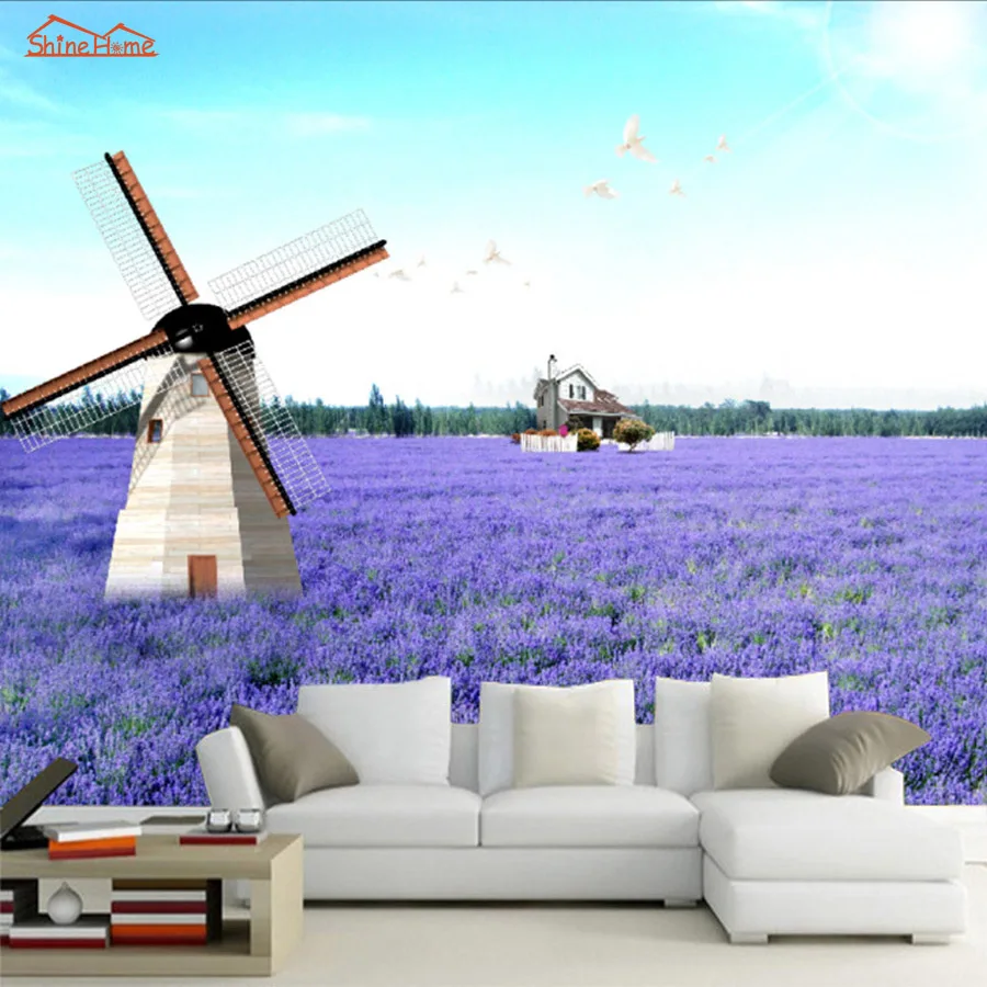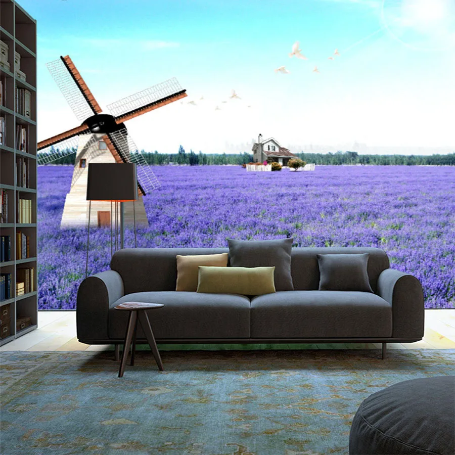 Лавандовая ветряная мельница, винтажные 3D обои для детской комнаты, печать, фото обои для 3d комнаты, Настенная гостиная, рулоны